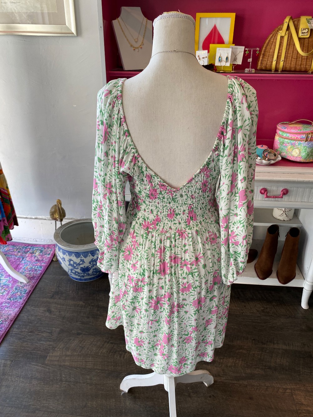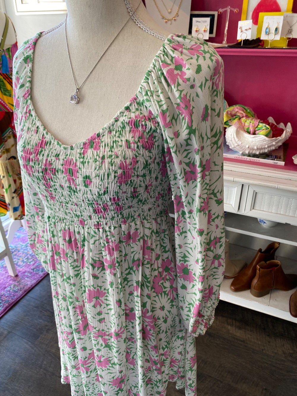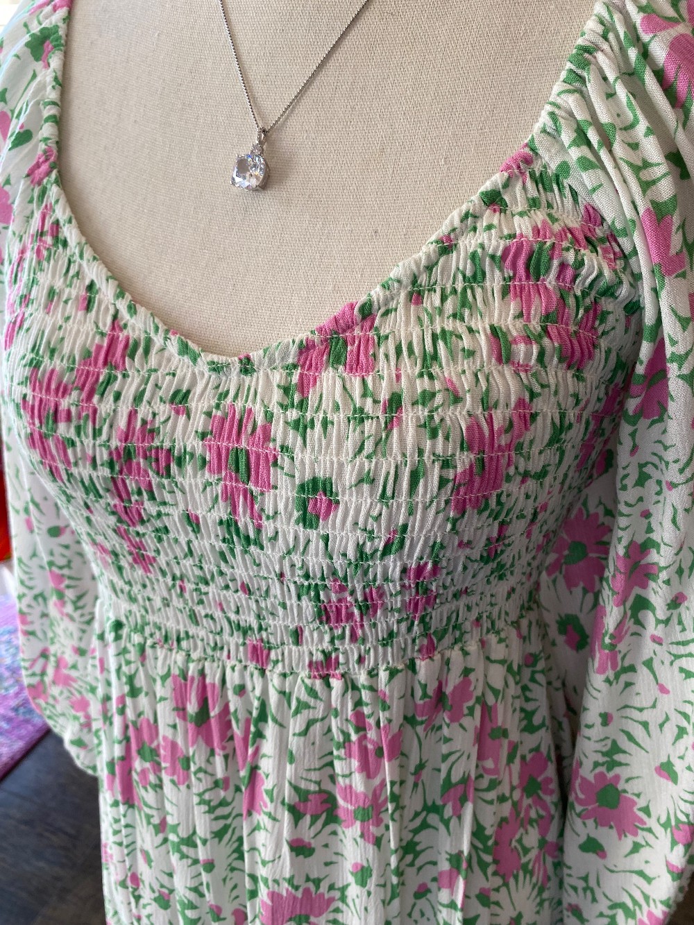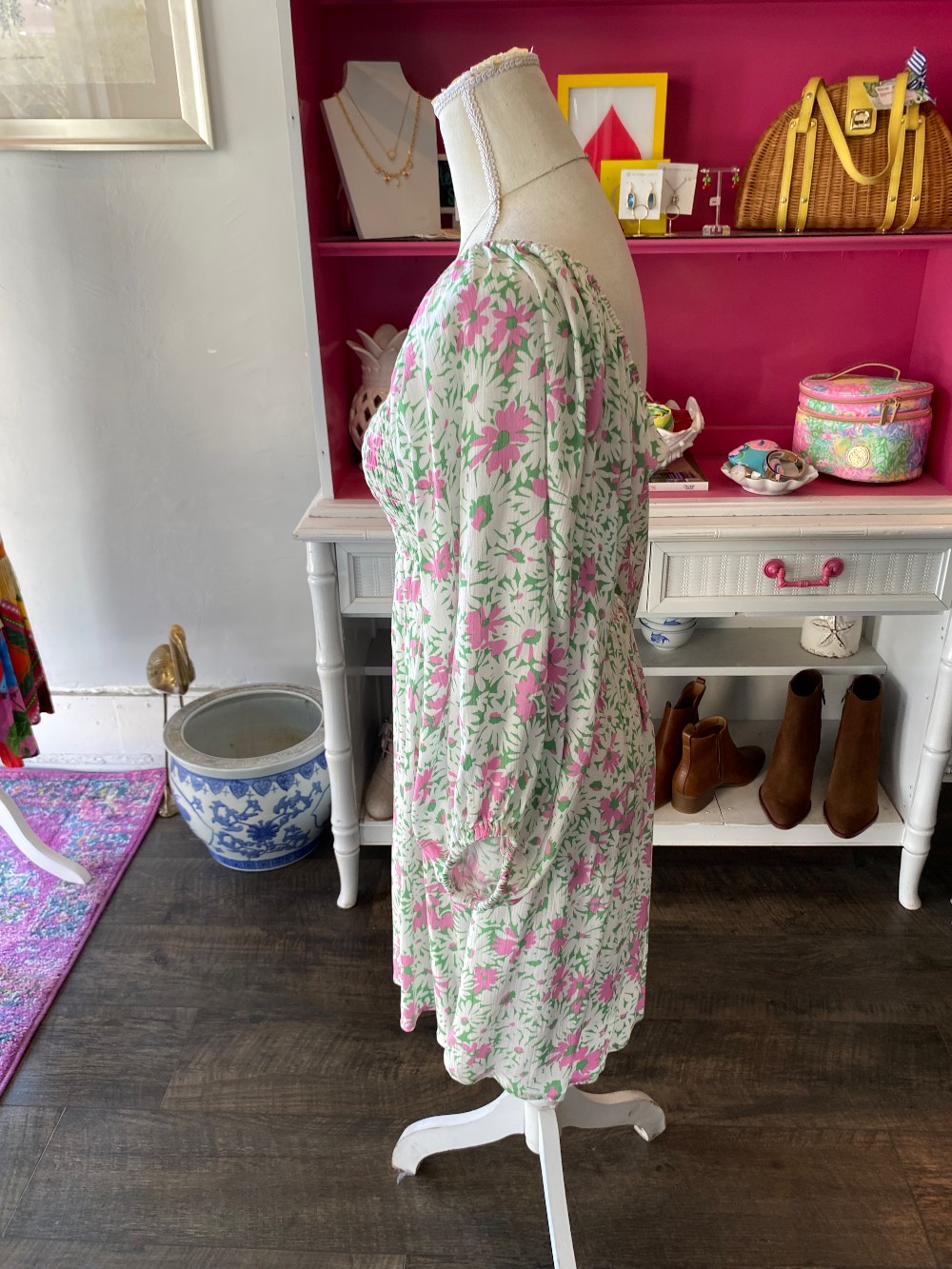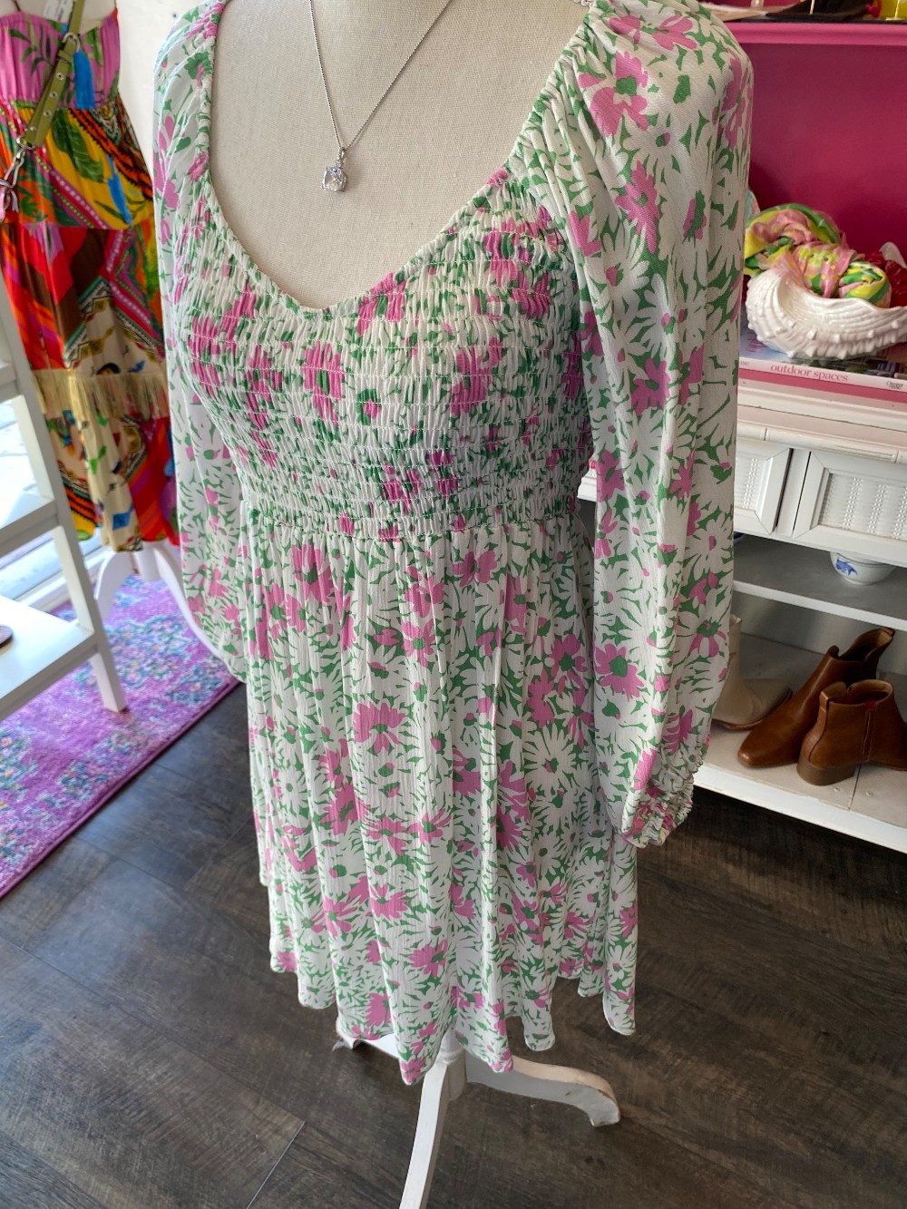 Like new pink and green dress floral dressmade of rayon