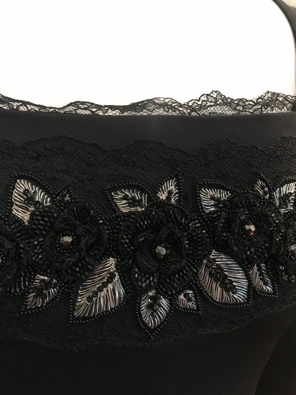 Gorgeous black dress with bead embellishments, super cute cap sleeves. Fits comfortably a size 12. Made of black silk and elastane.