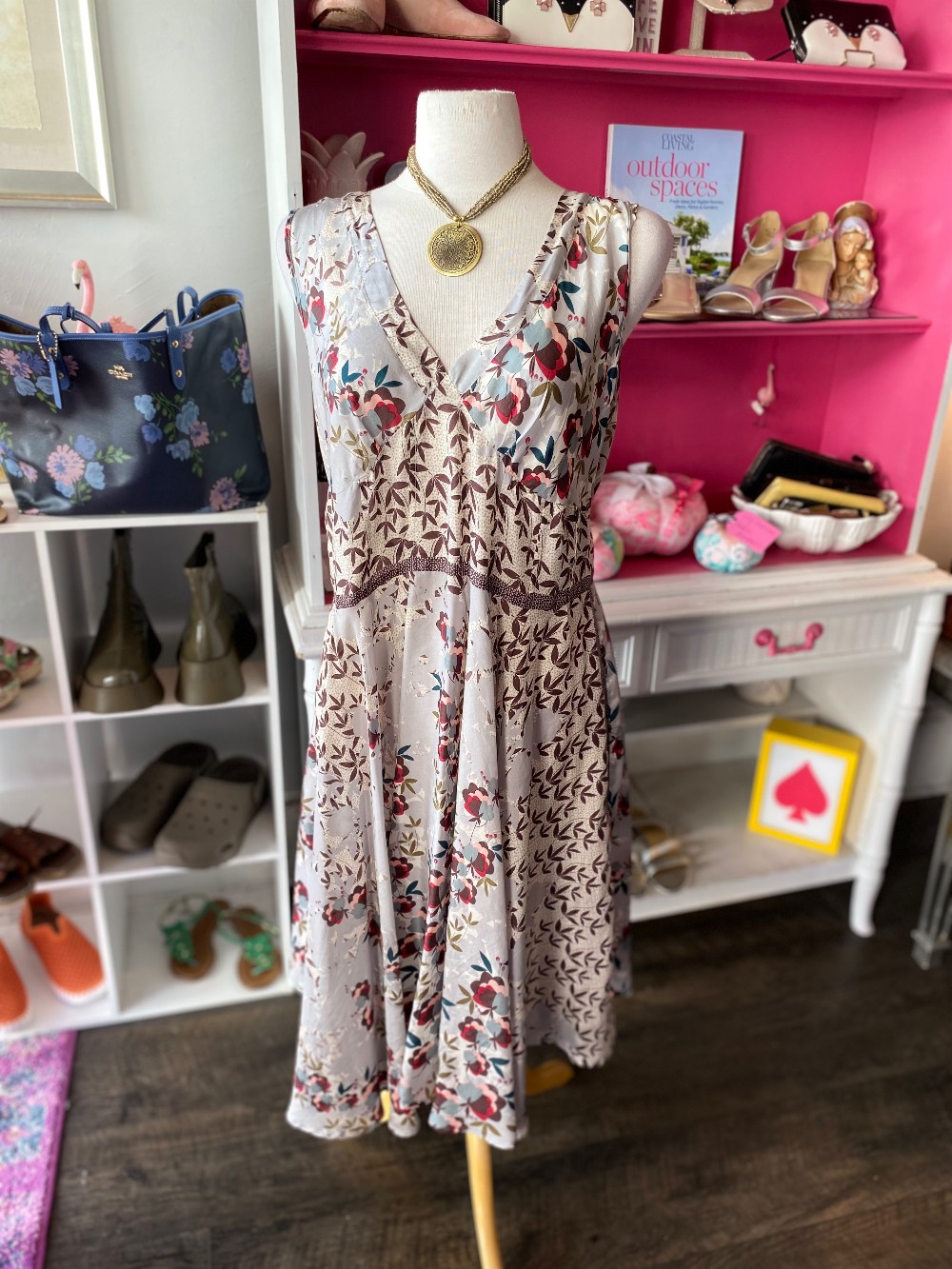 Home / Dresses Large Sizes 12 - 14 / Johnny Was light blue silk floral dress size L