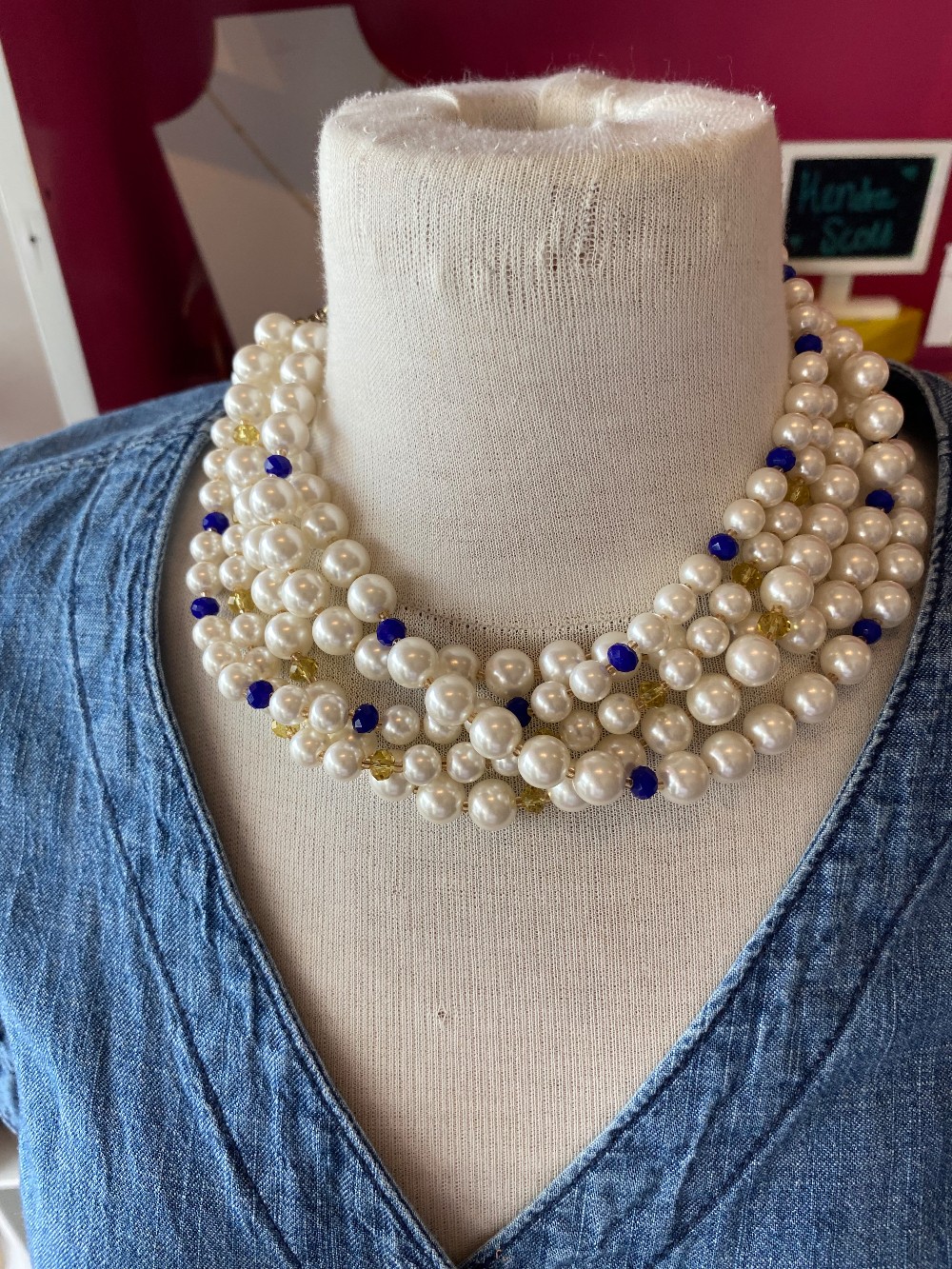 Really pretty vintage faux pearls from Betsey Johnsonblue and yellow accent beadsadjustable length