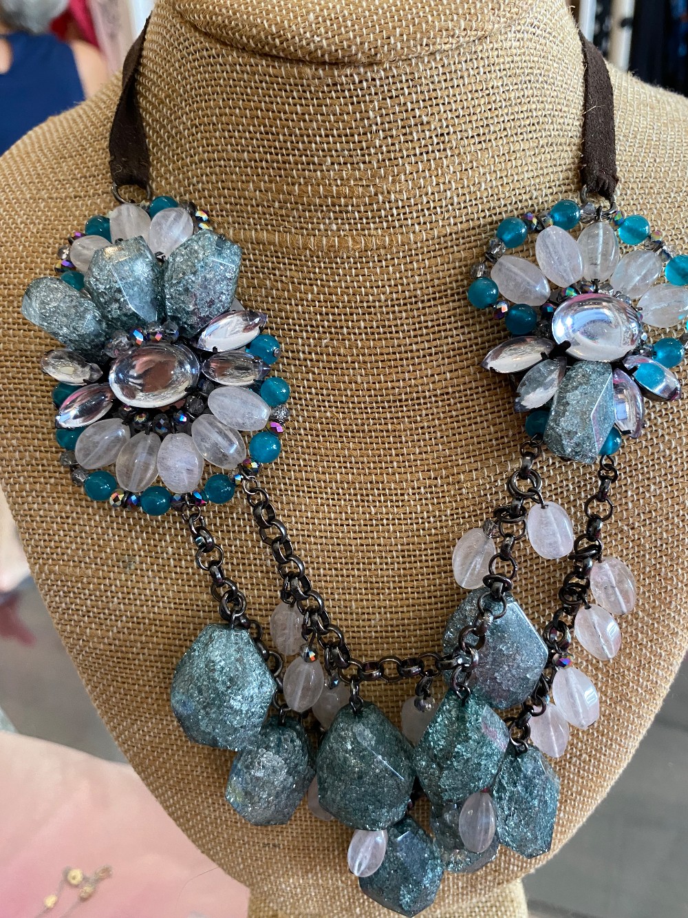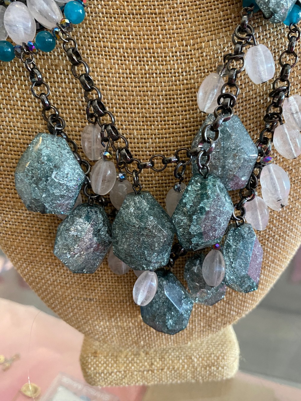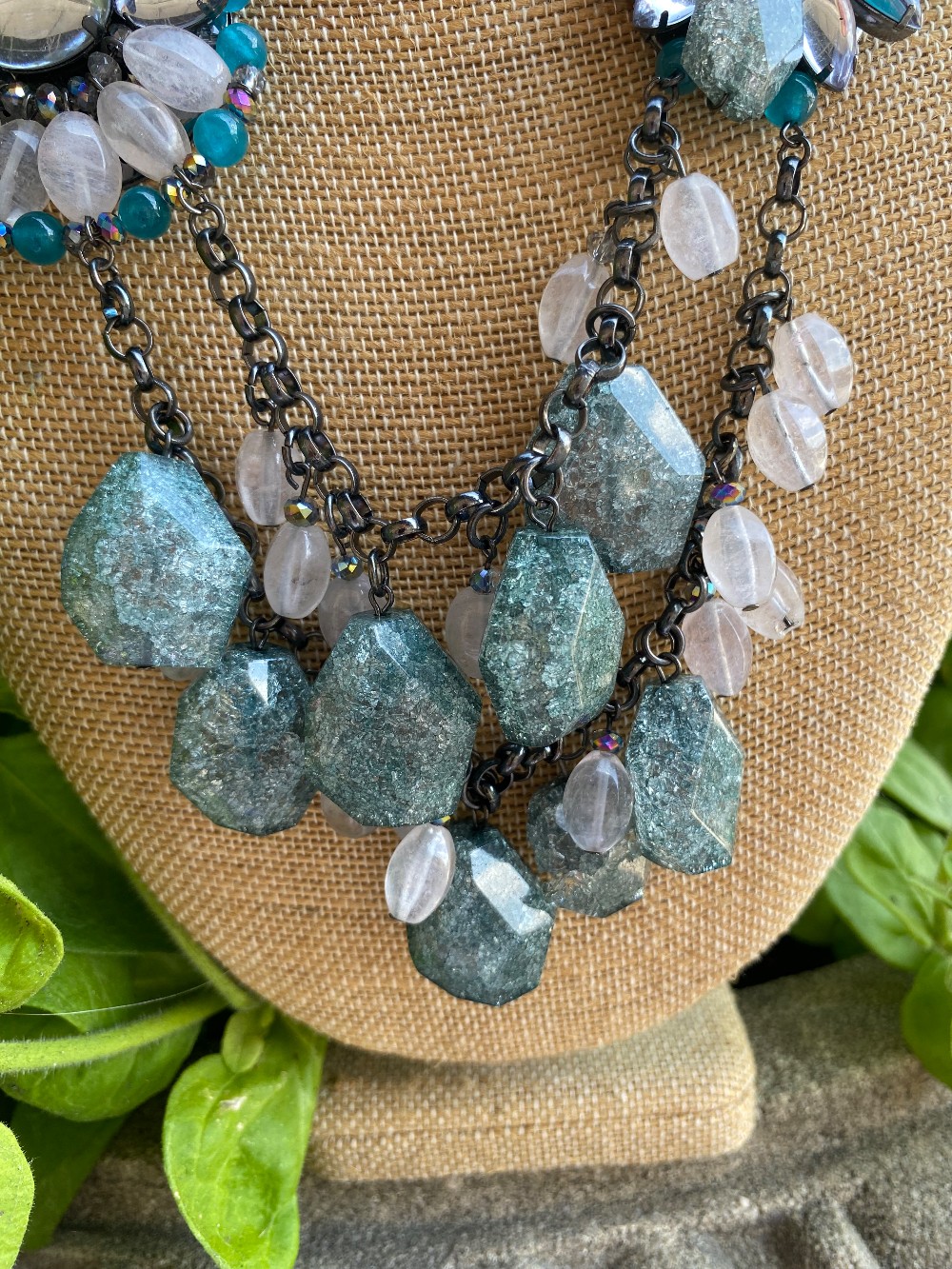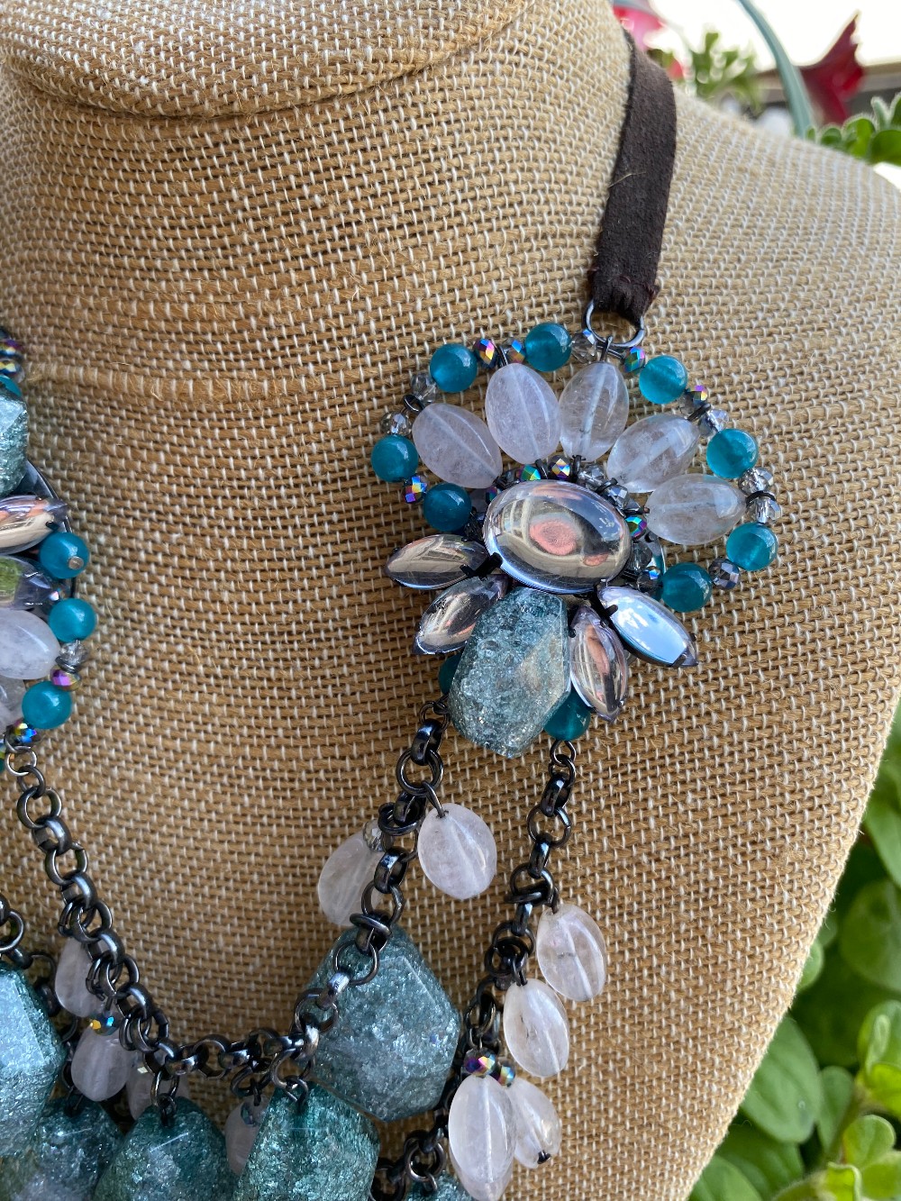 Gorgeous faux stone and rhinestone necklacebig bling in beautiful blues with clear and white stones