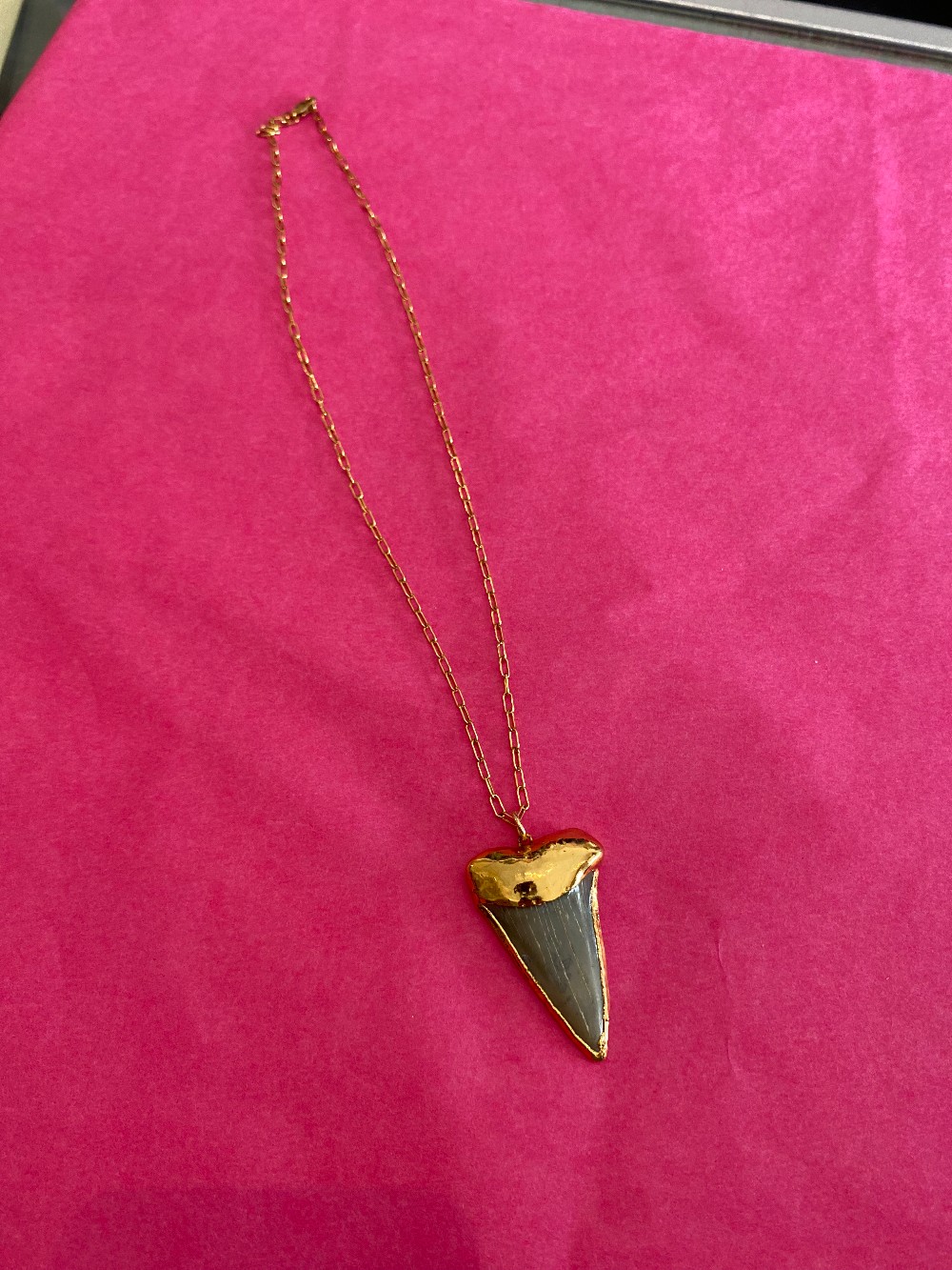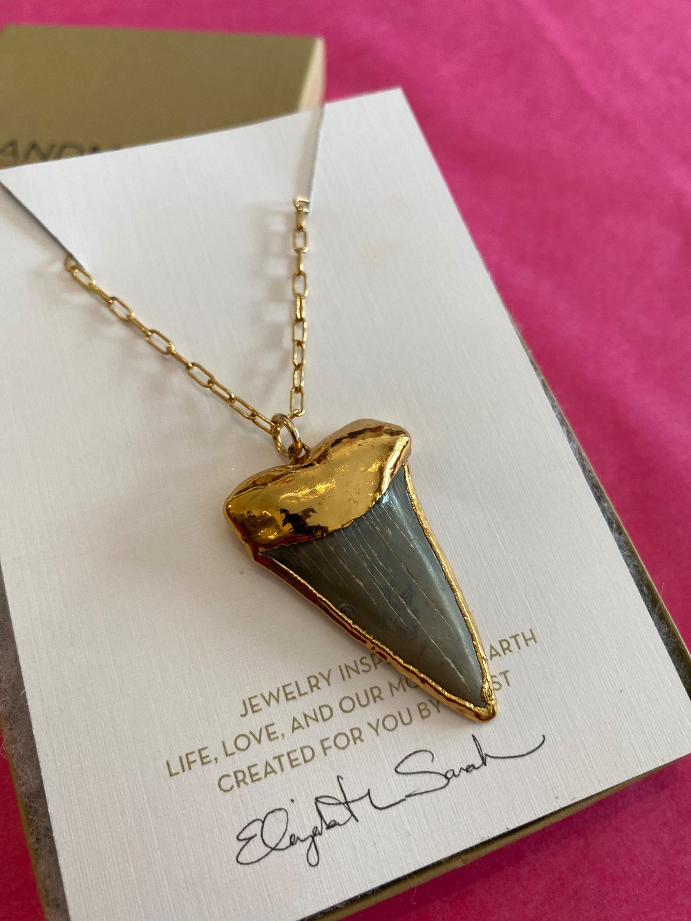Super cool Elizabeth Sarah fossilized shark tooth necklace24kt electroplated tooth on gold chainBrand new in the box$500+ retail