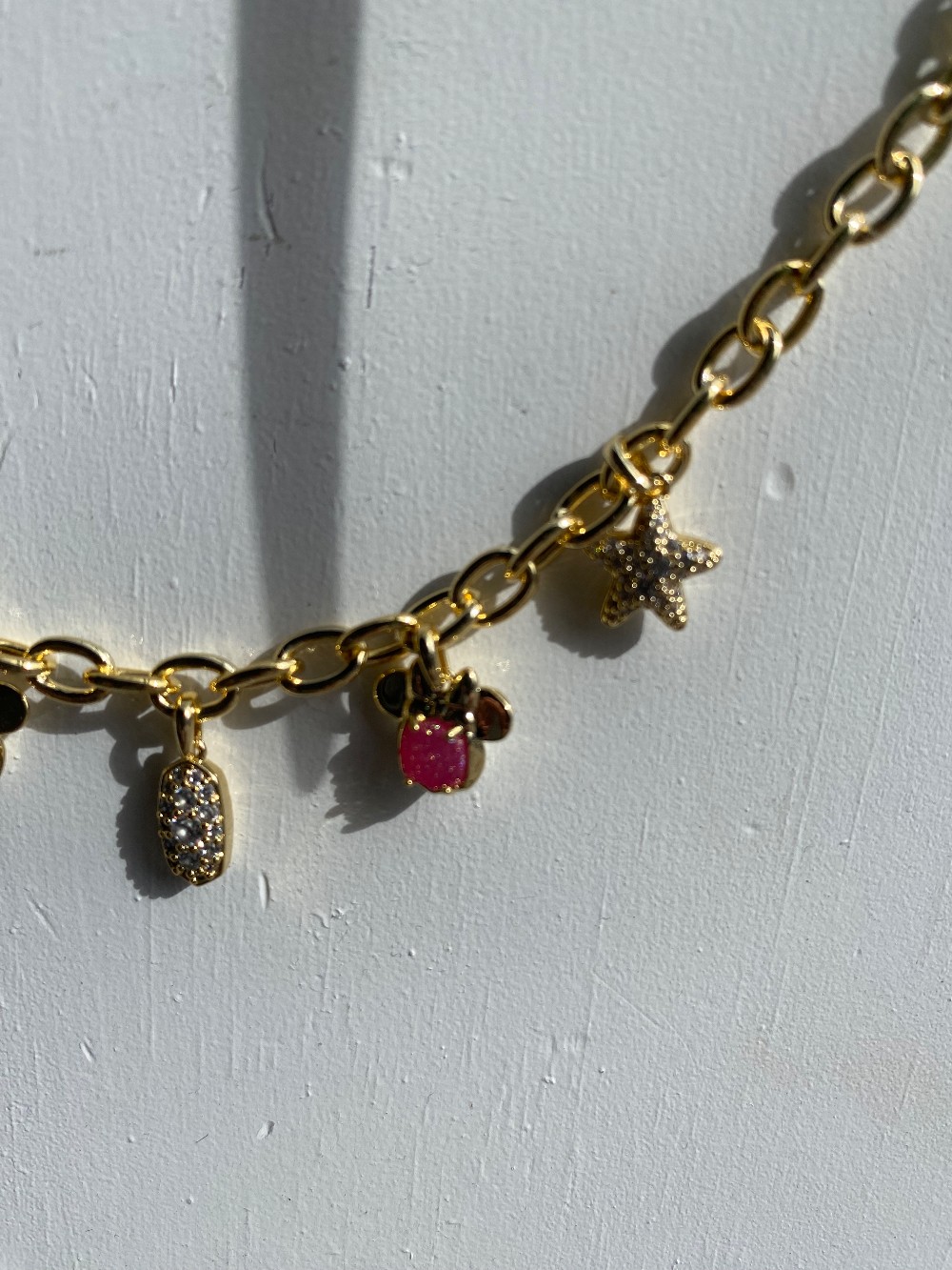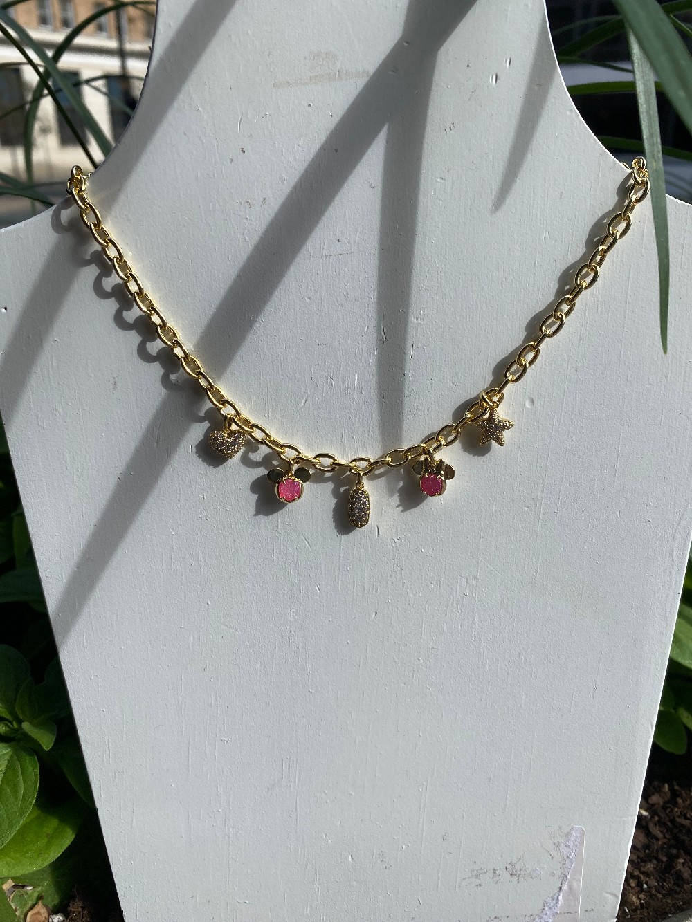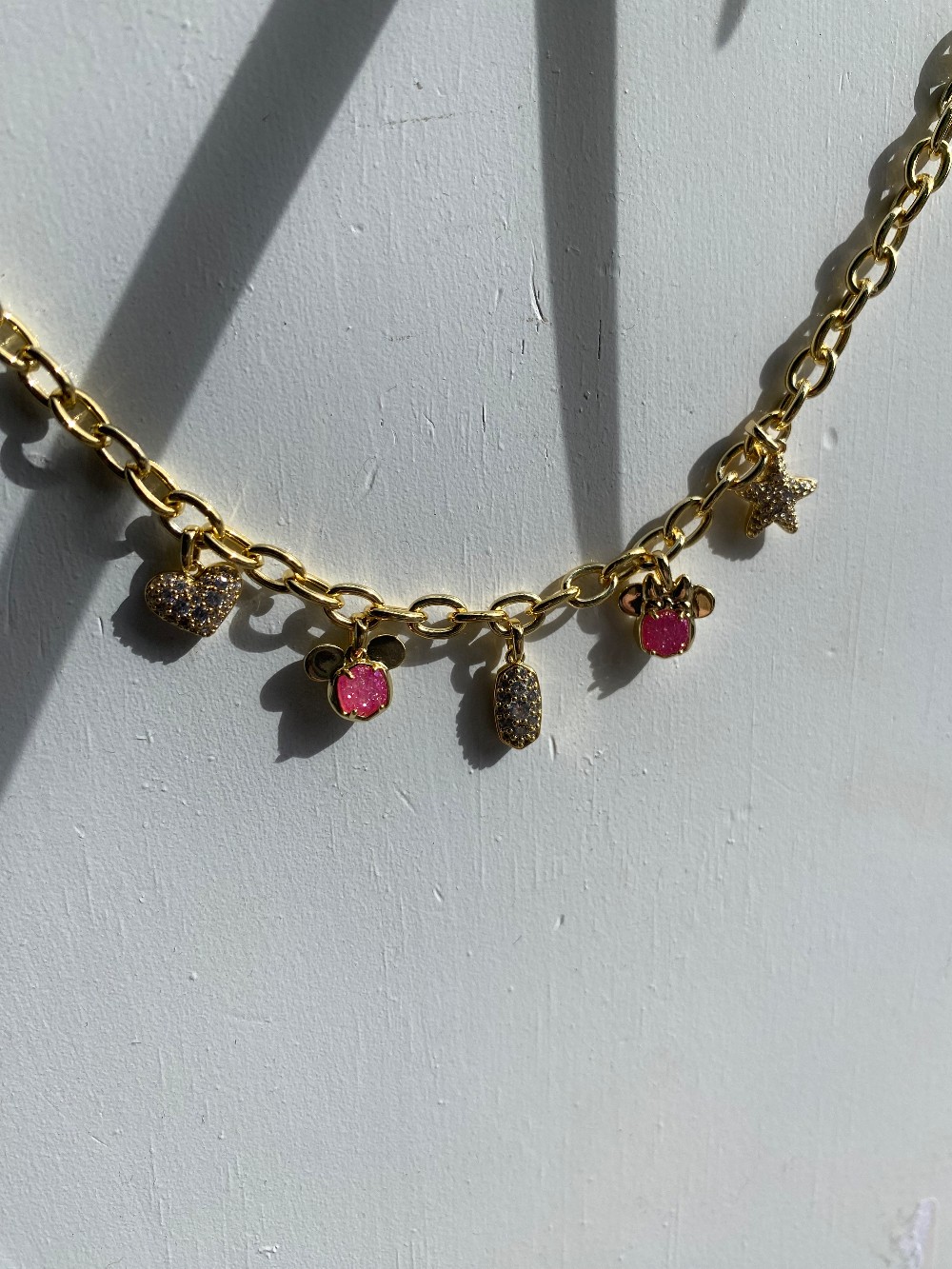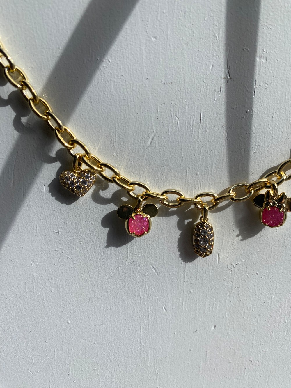 Brand new adjustable length Kendra Scott x Disney charm necklacegold tone with pink and clear stonescomes with super cute pouch