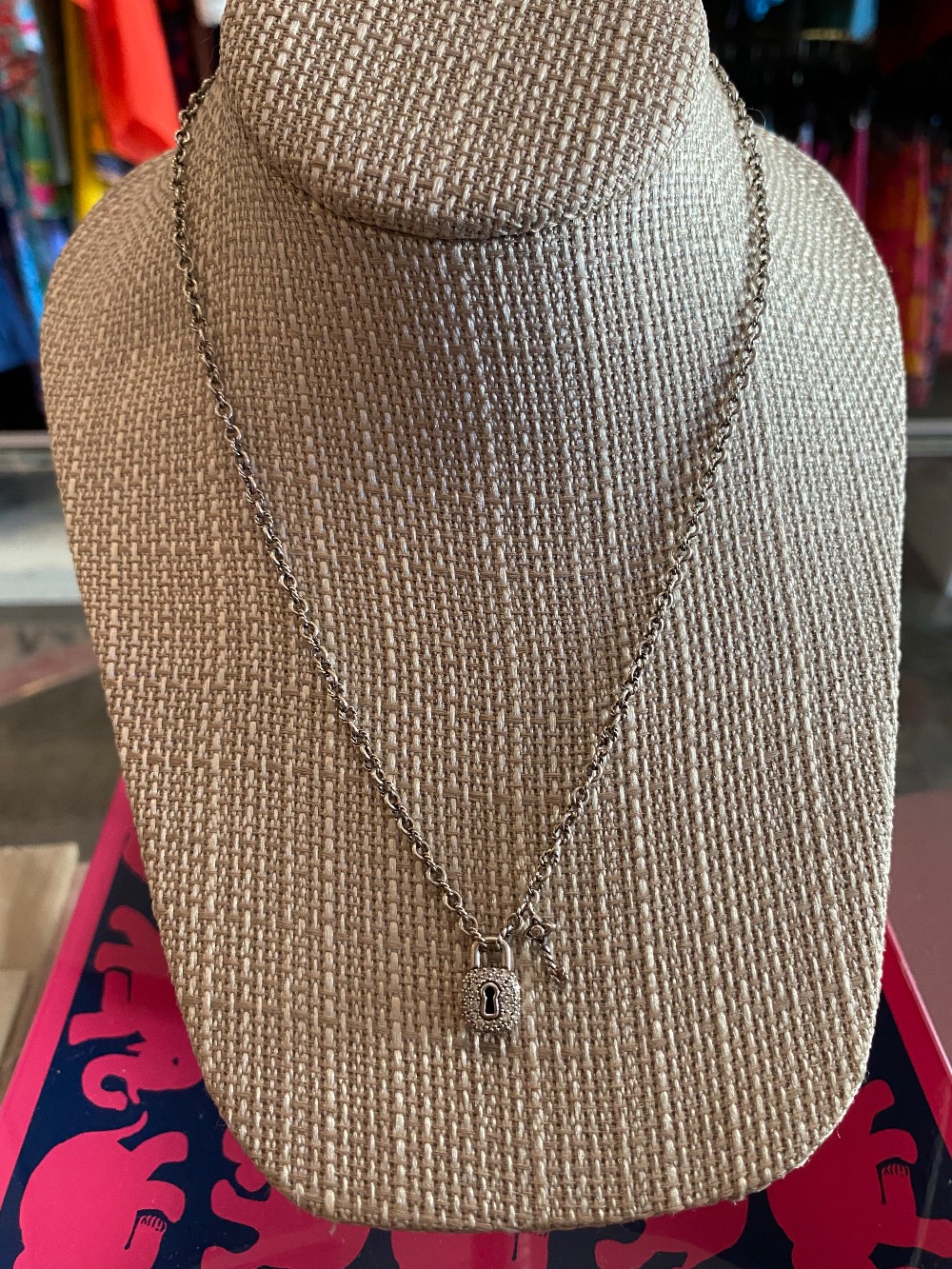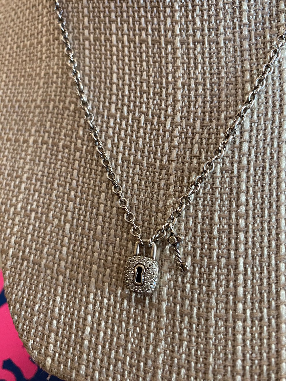 Gorgeous silver and diamond pave lock and key pendant necklacecomes with letter of authenticity
