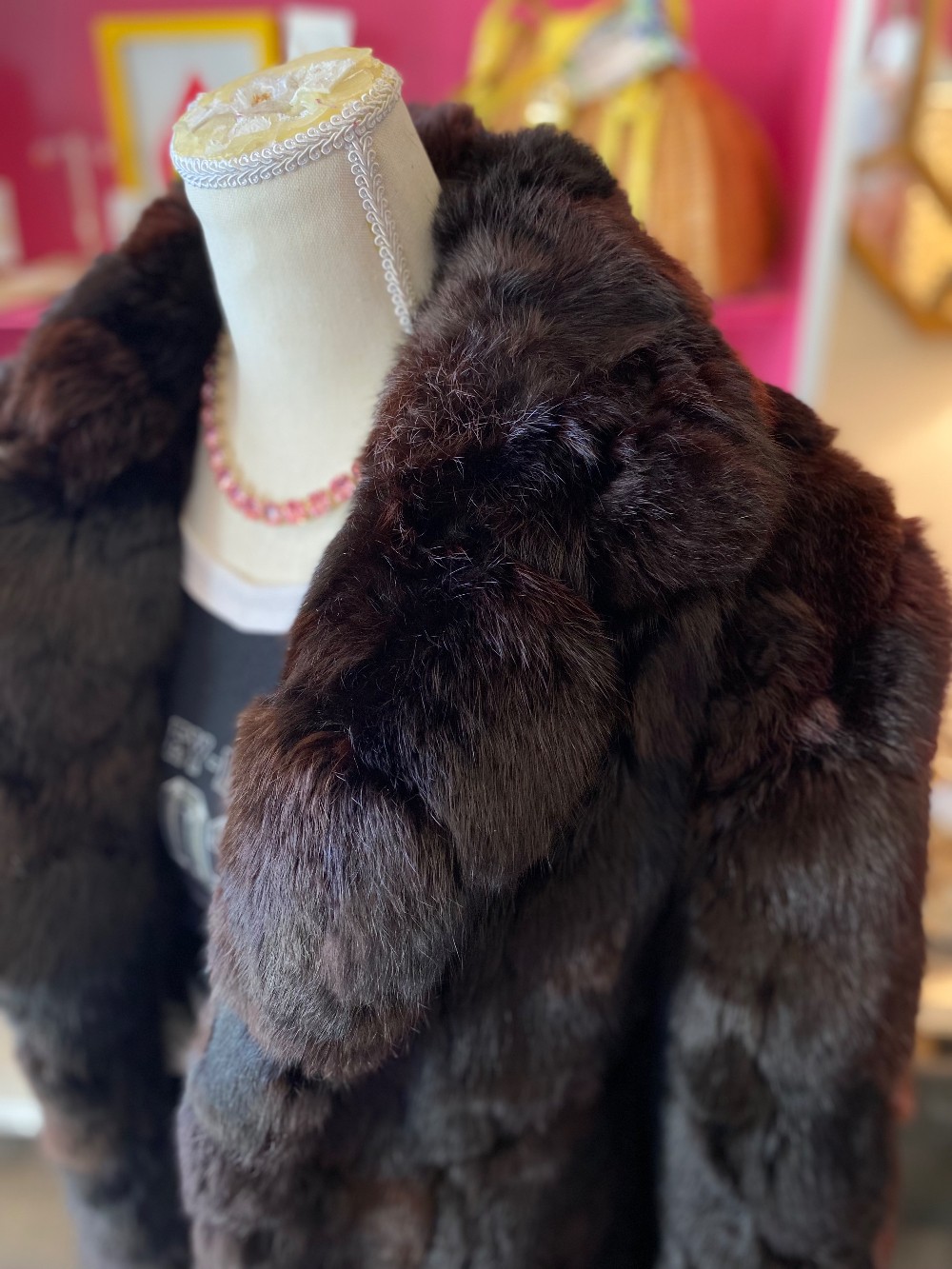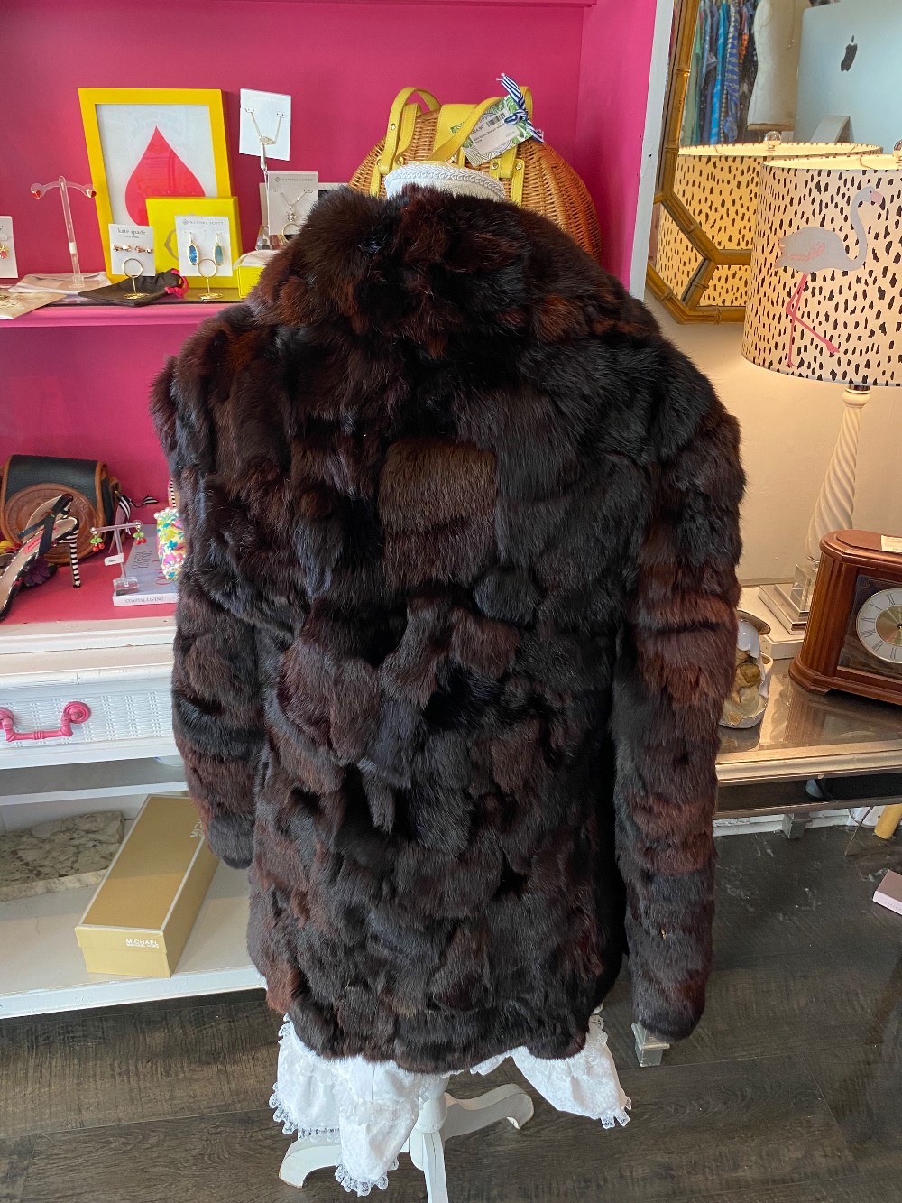 Gorgeous vintage rabbit fur coatDark reddish brown colorHas belt loops but no beltNo flaws