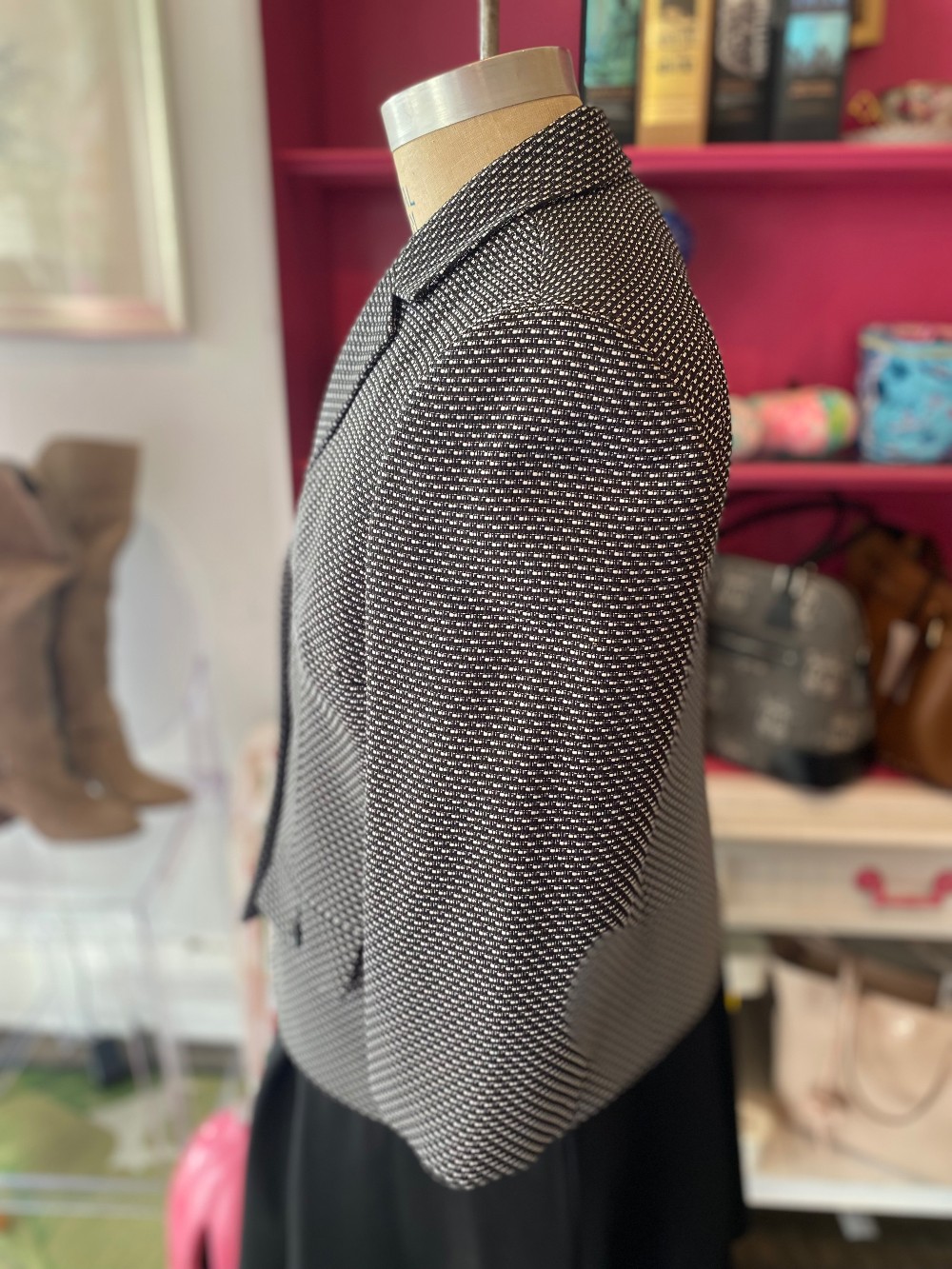 Perfect blazer with jeans or a skirtblack and white with a touch of graymade of polyester, fully lined