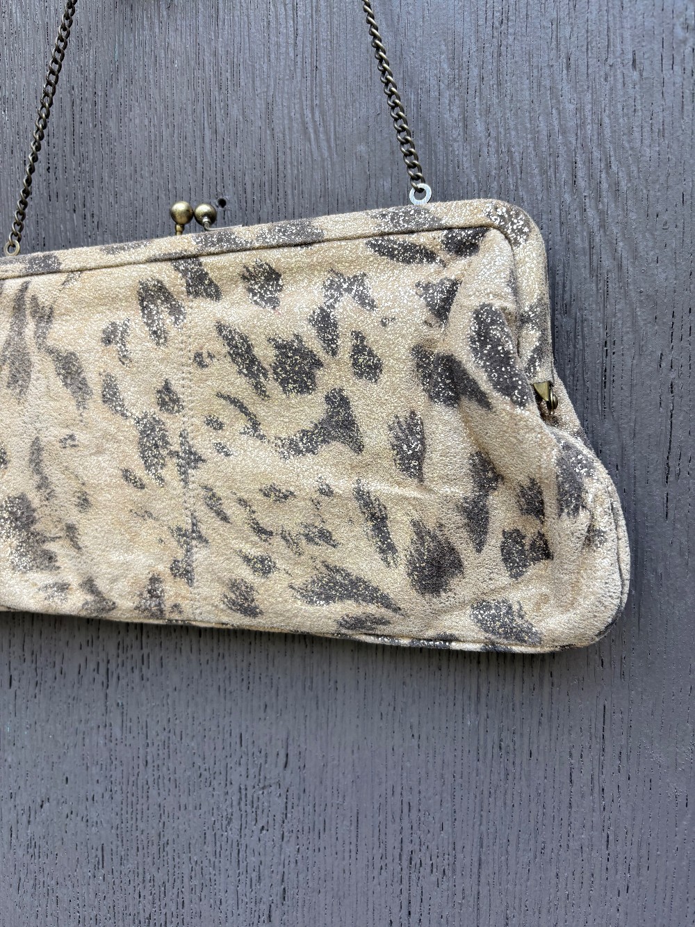 In like new conditionfabric animal print clutch or it can be worn as a shoulder bag