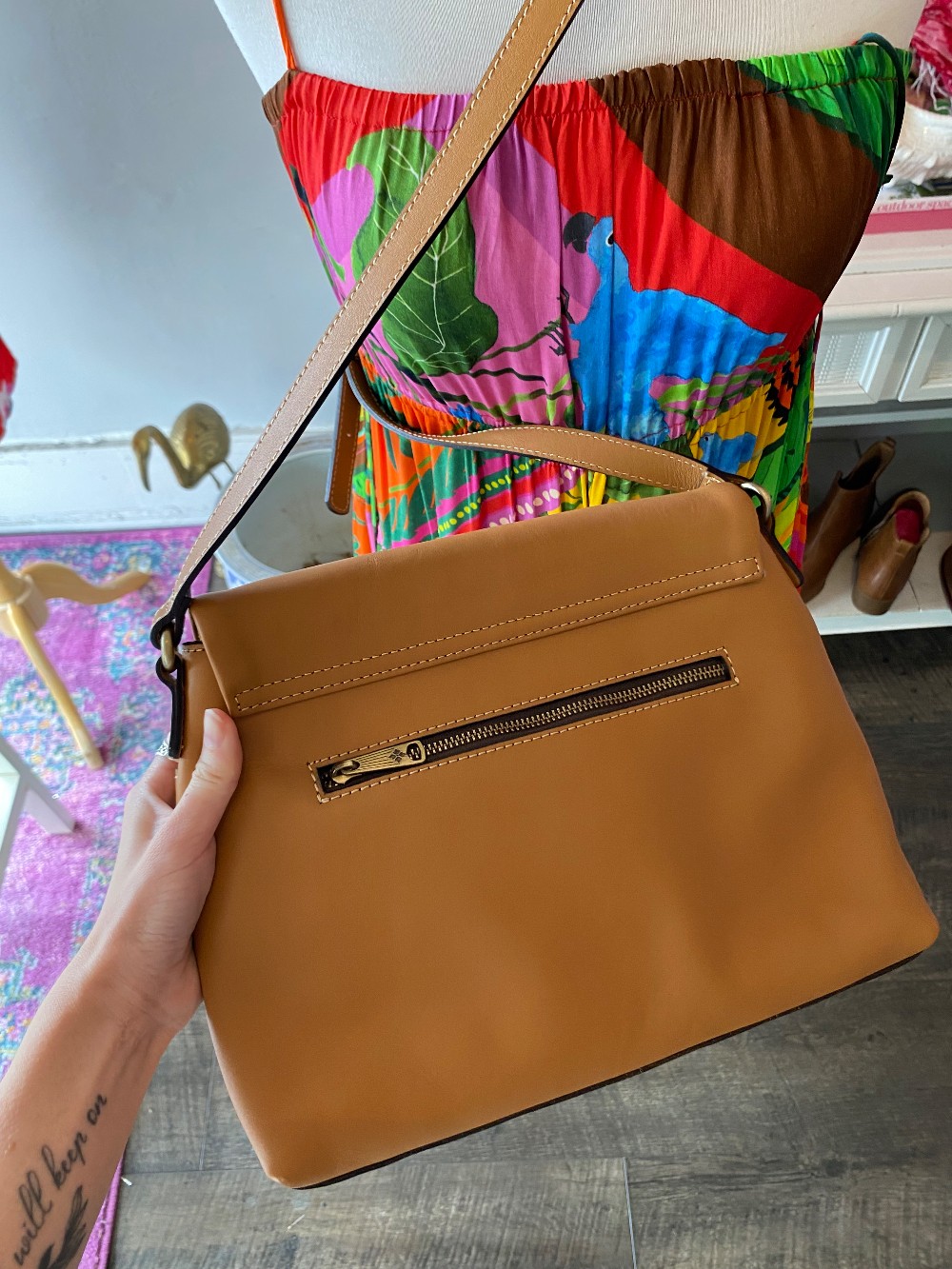In excellent pre loved conditionNo flawsGenuine leatherAdjustable strapComes with dust bag and change purse
