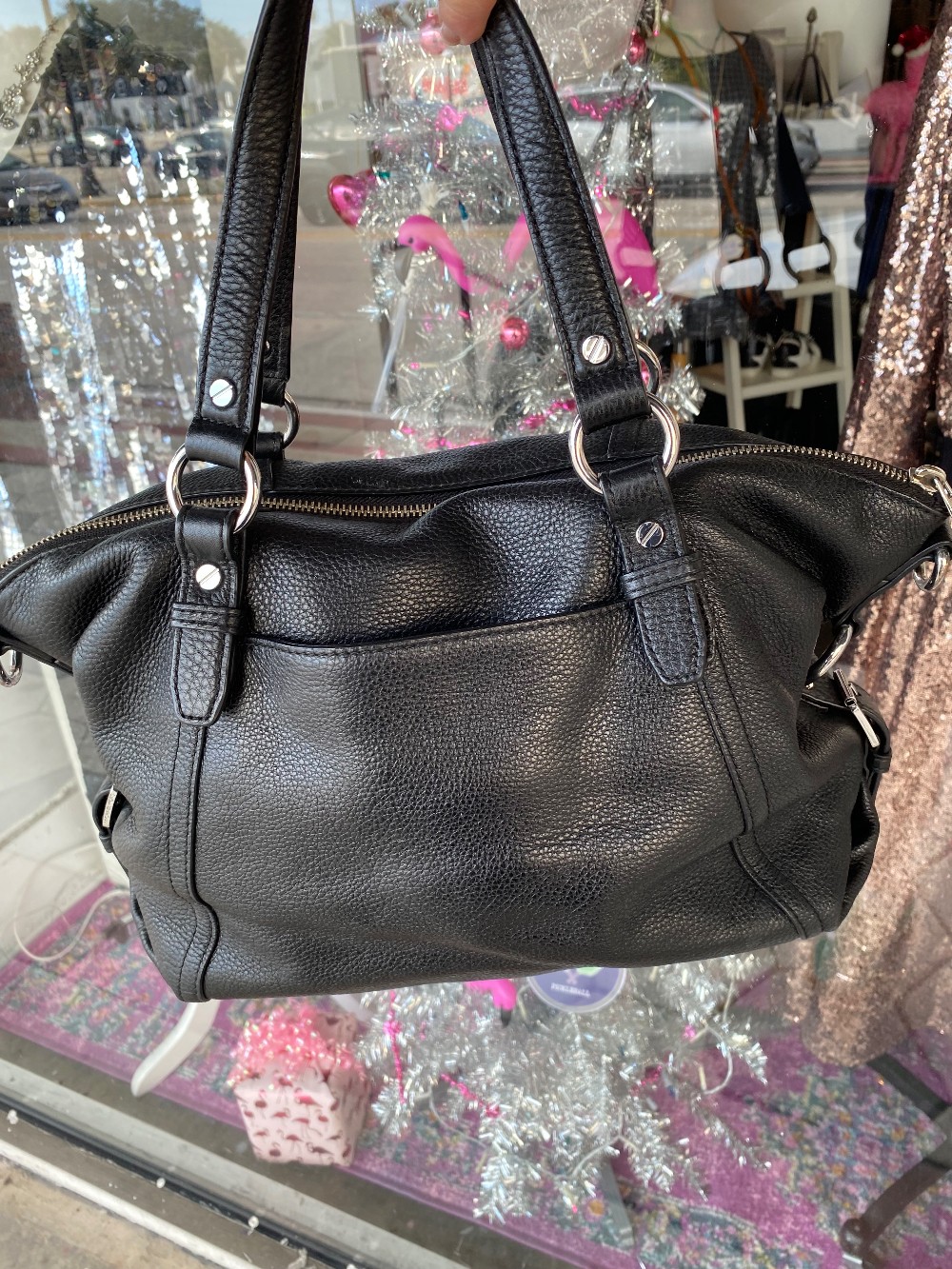 Gorgeous black leather pebbled leather bag with shoulder strapsilver metal hardware