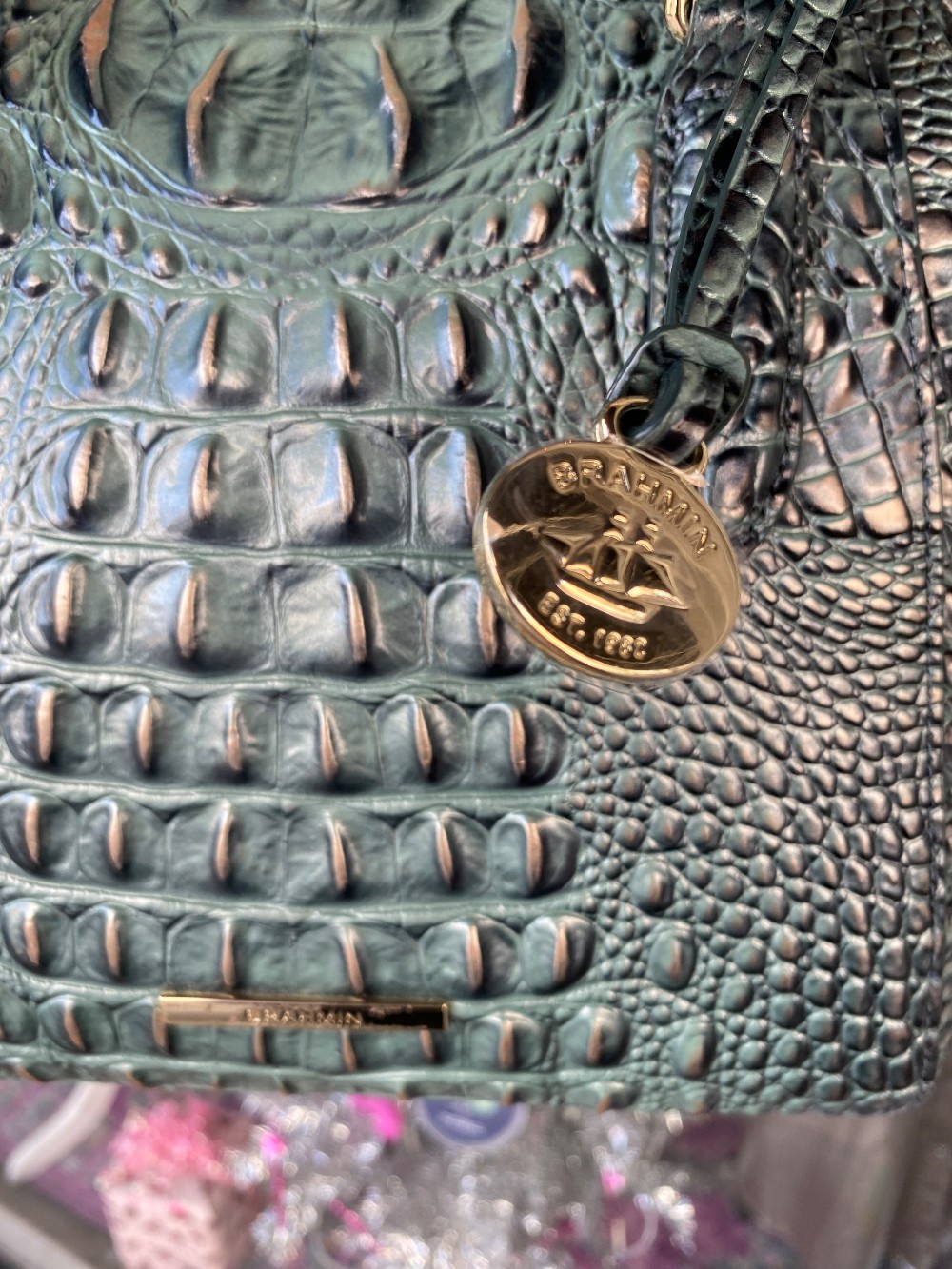 In like new conditiongorgeous blue and silver Brahmingold tone hardwarecomes with shoulder strap