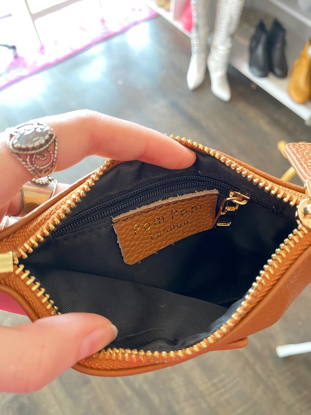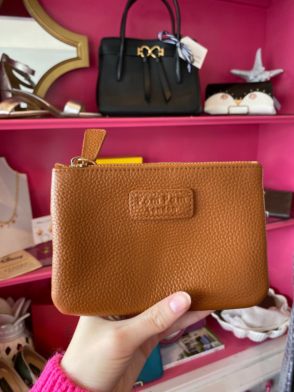 In like new conditiontan pebbled leathergold tone hardware