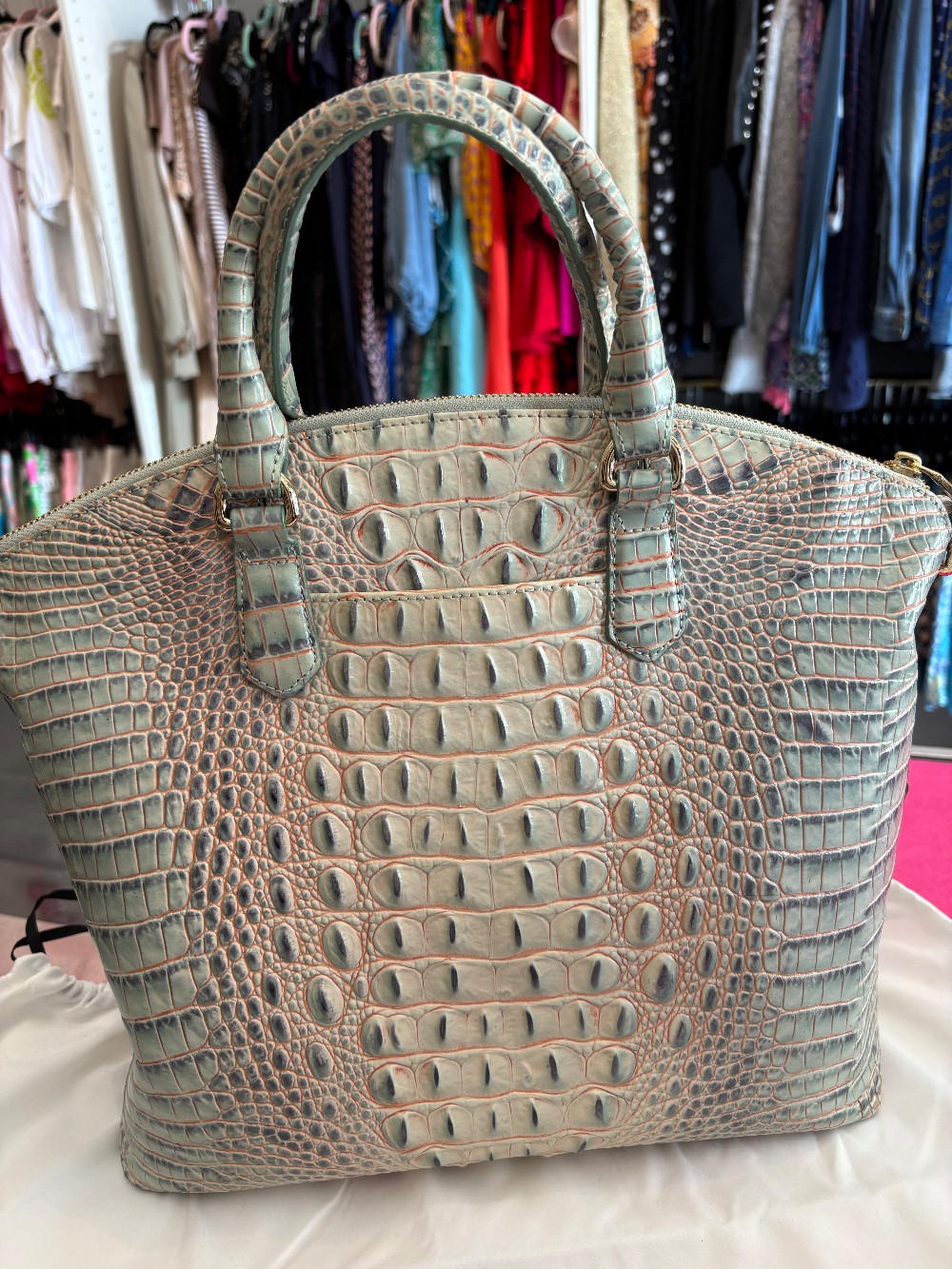 In like new conditionsuper clean on the outside and the insidemissing it's shoulder strapcomes with all of it's paperwork