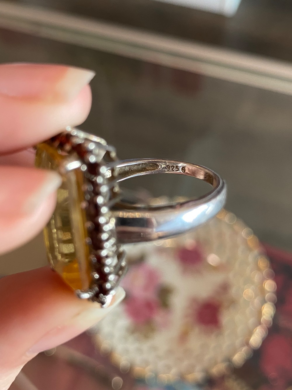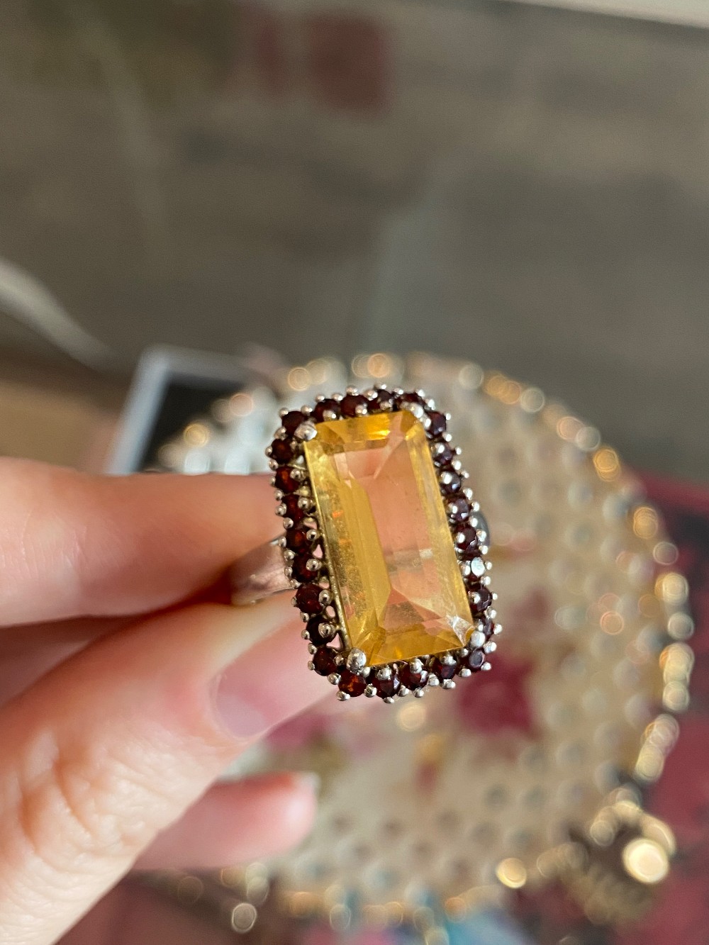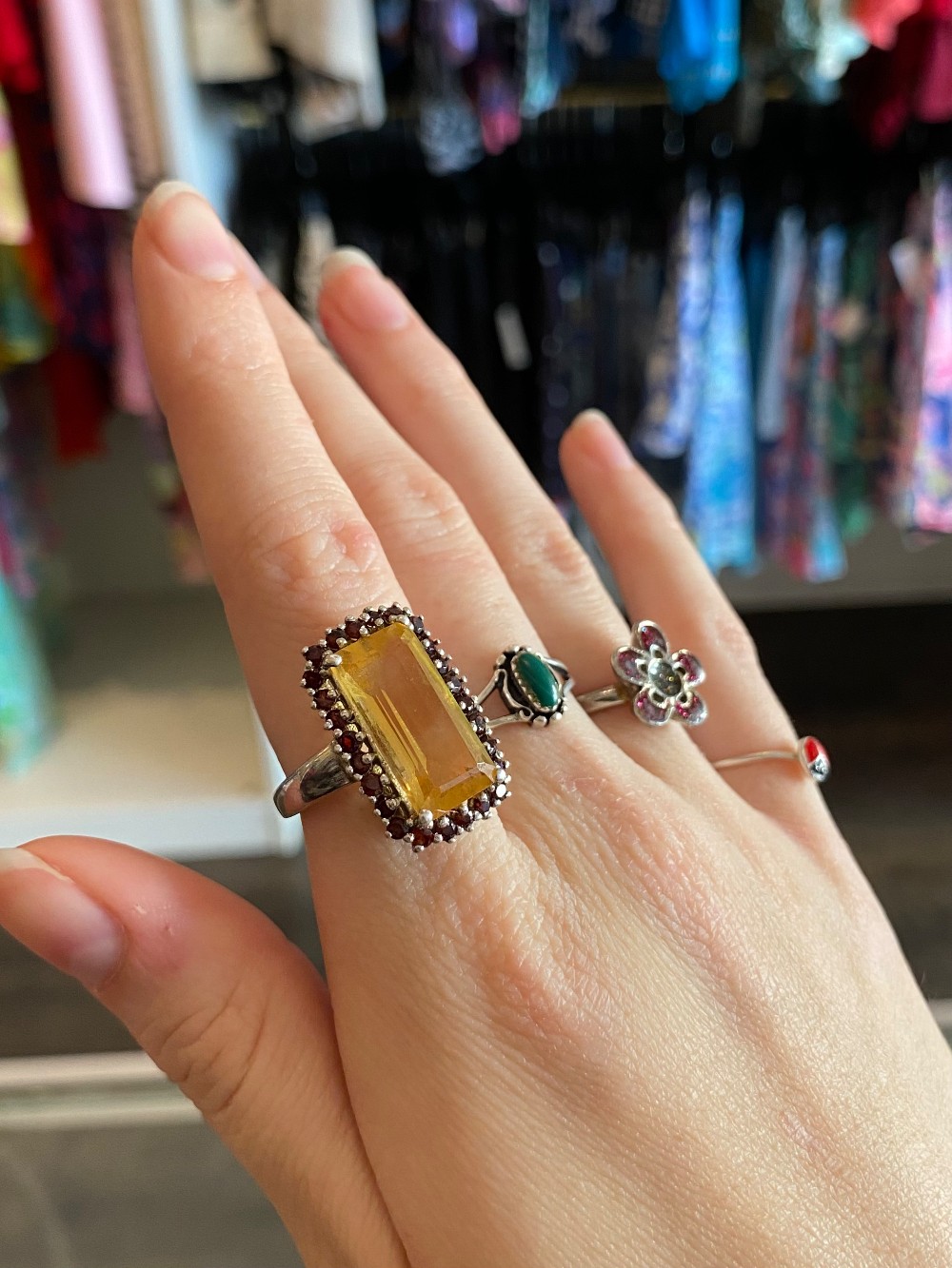 Genuine citrine and garnetSterling silver band