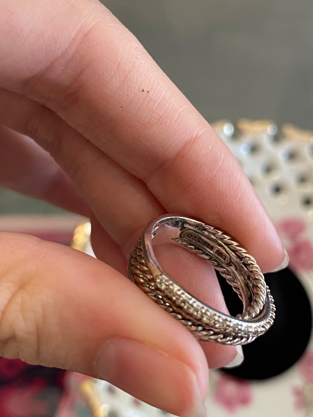Authentic and marked David YurmanSterling silver with pave set diamondsEstimated about size 6.5