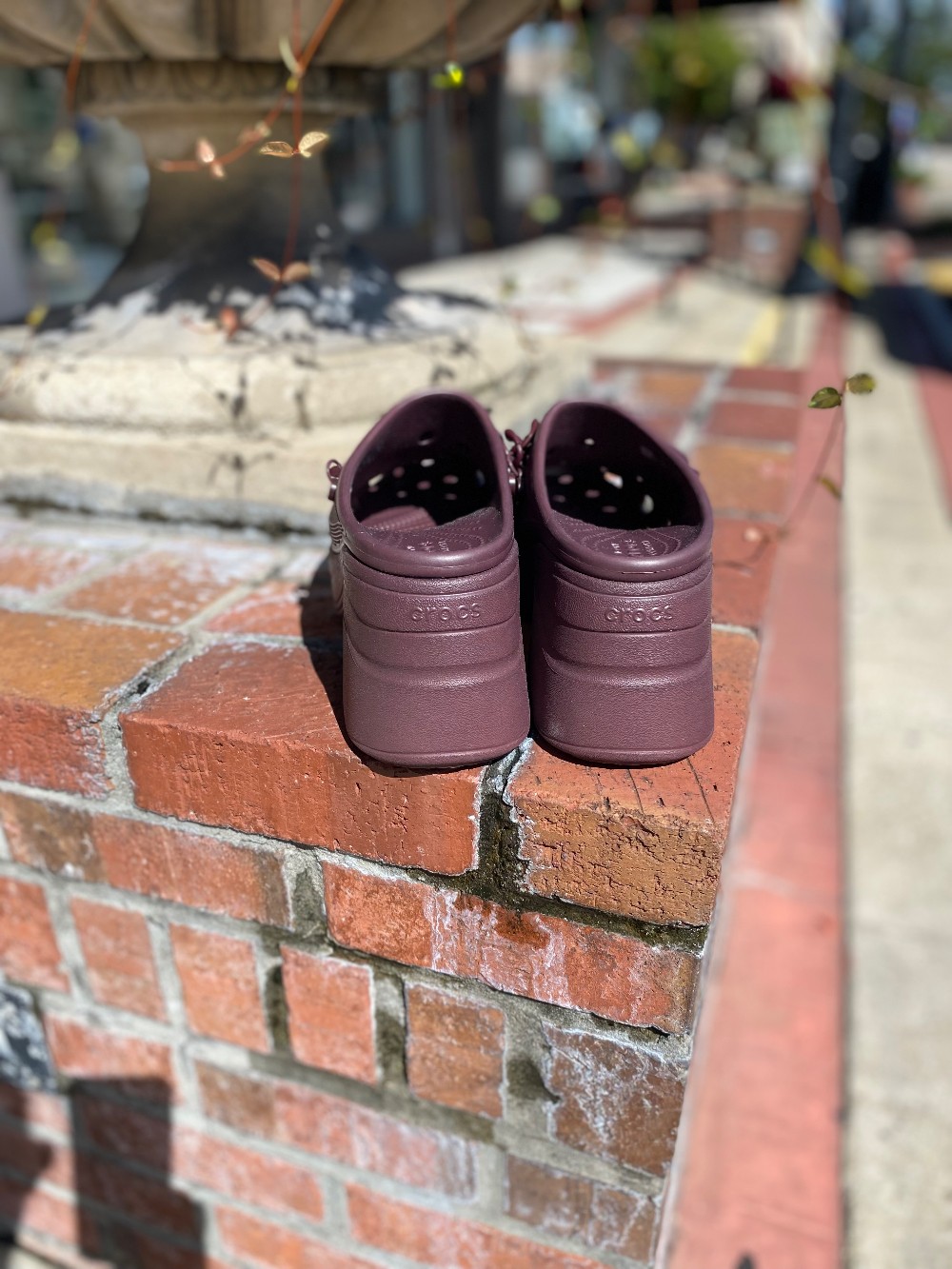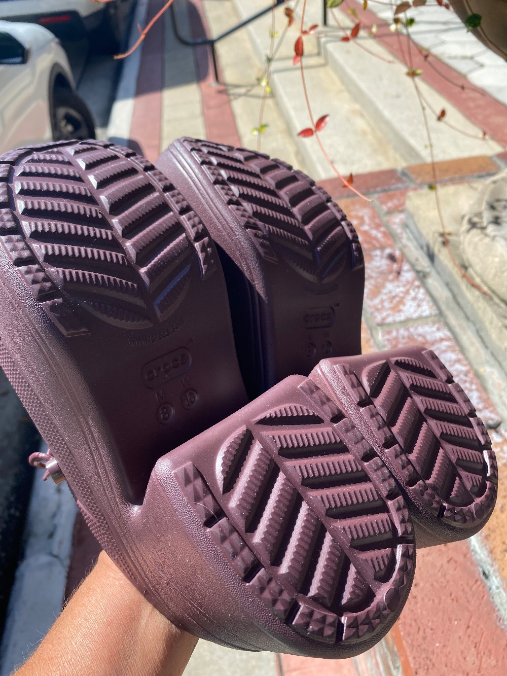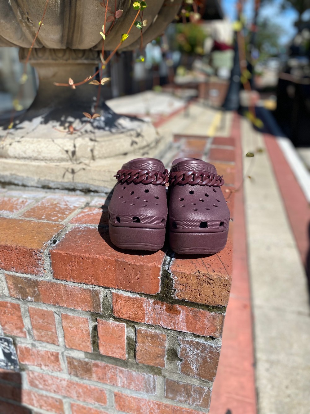 Brand Newthese deep plum Crocs with chain across the top are so comfortable and yes, they are cute