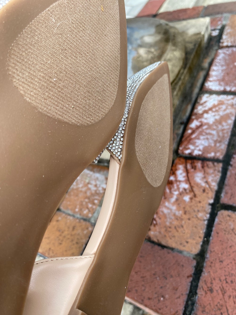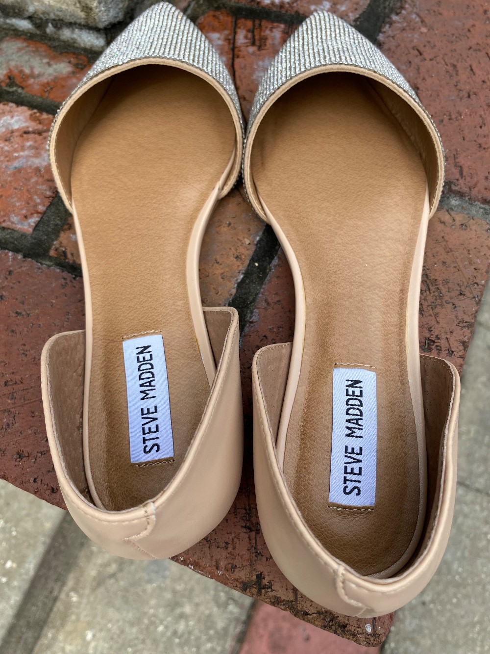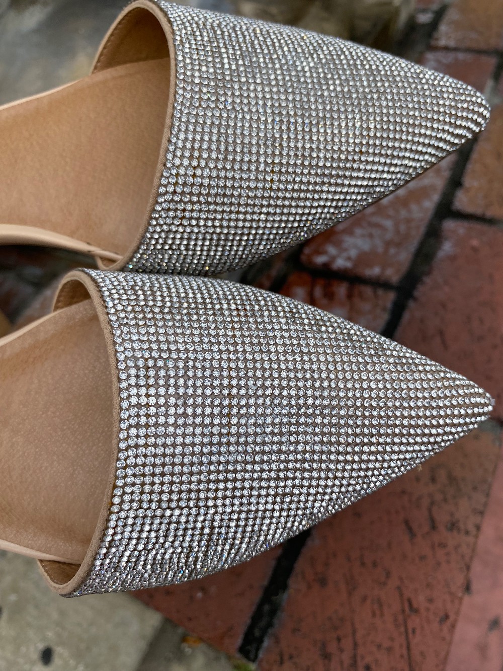 Brand new in the boxnude flats with clear rhinestones