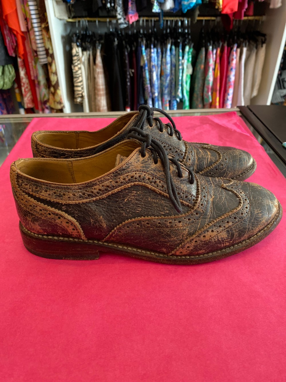 Super cool distressed leather Oxford shoeschocolate leather with tan leather details