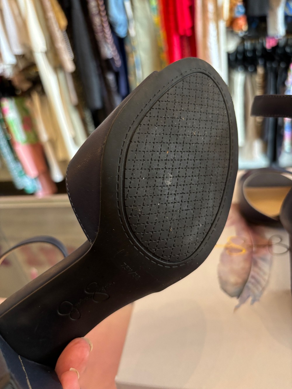 In preloved conditionminor wearfaux navy blue leather upper
