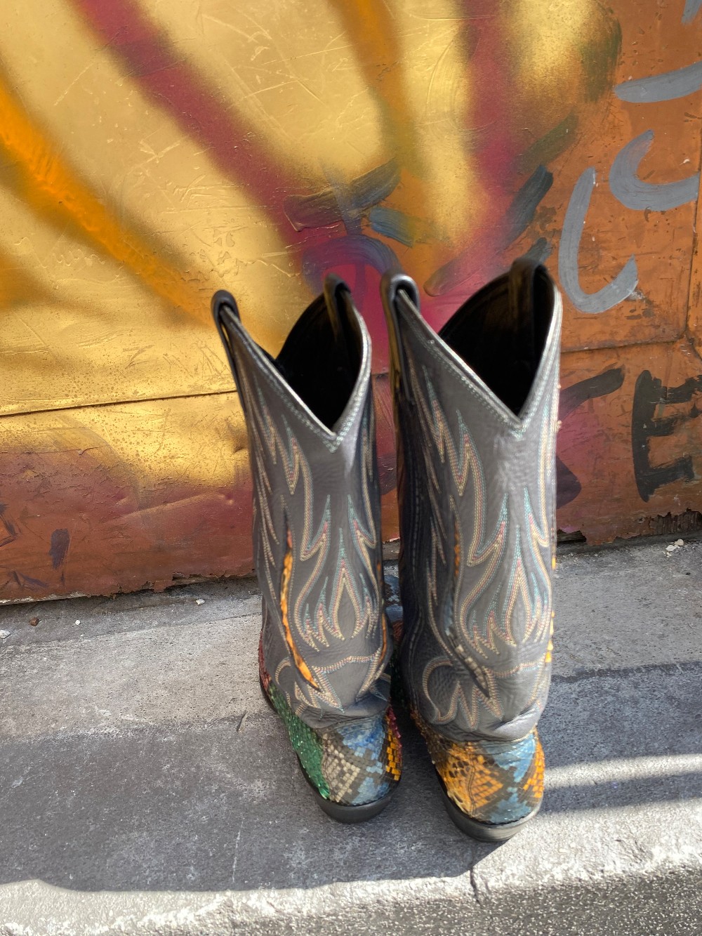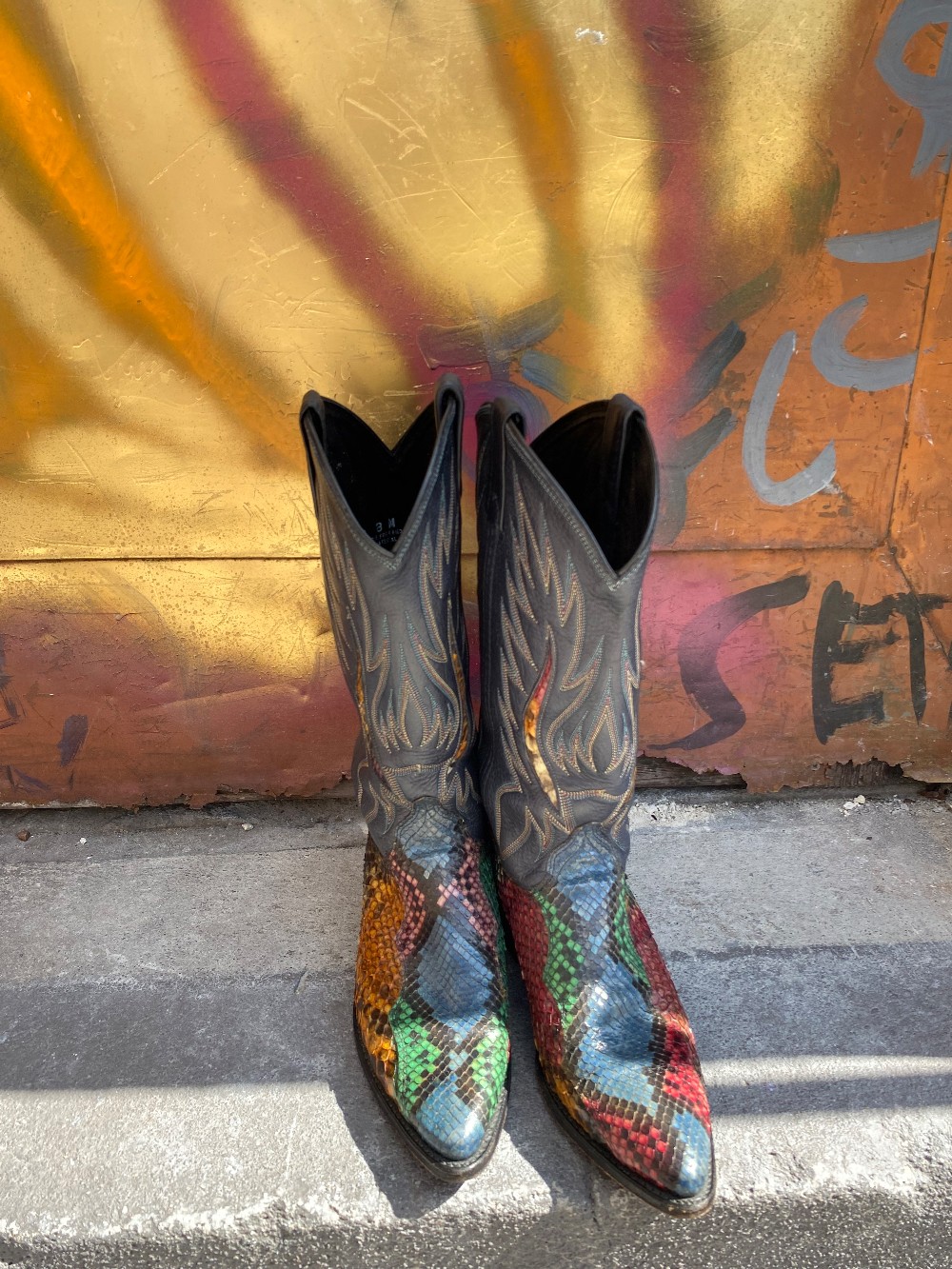These boots are soooo cool, you must see them in personDan Post, size 8Python and leather