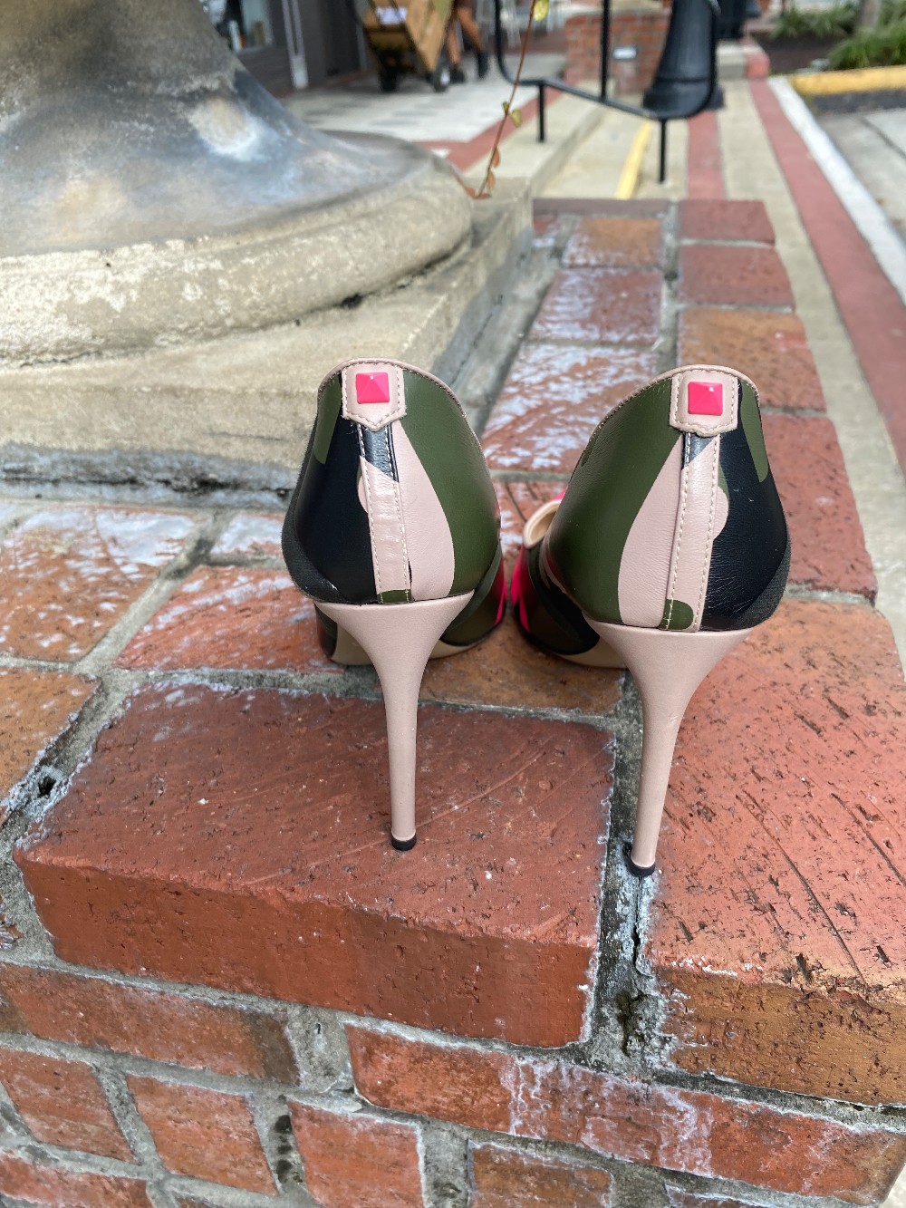 In good preloved conditionsome minor scuff marksheel is approx 4 inches