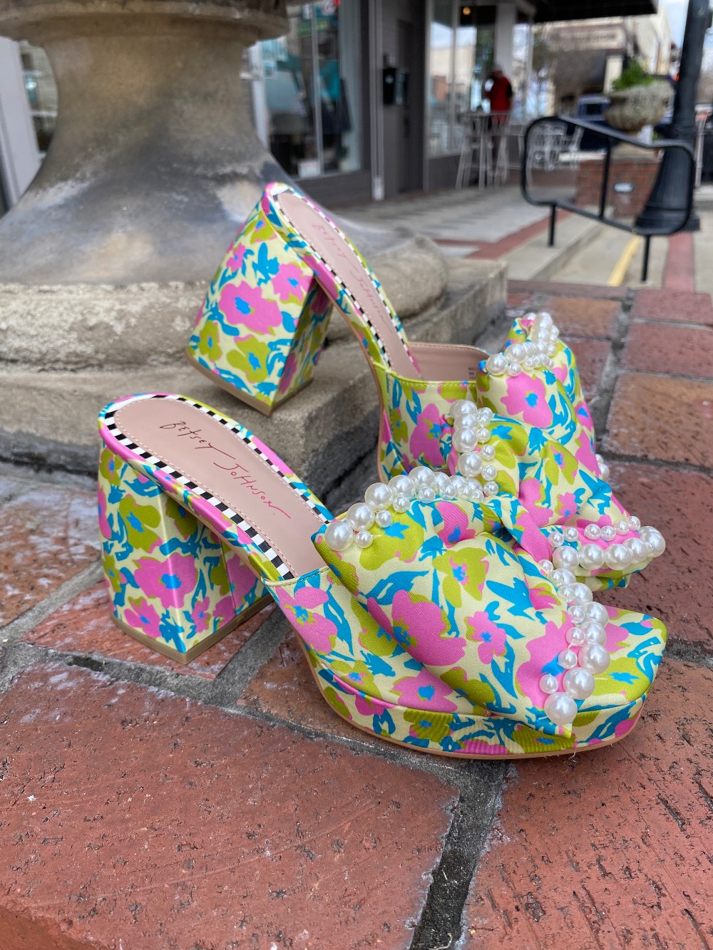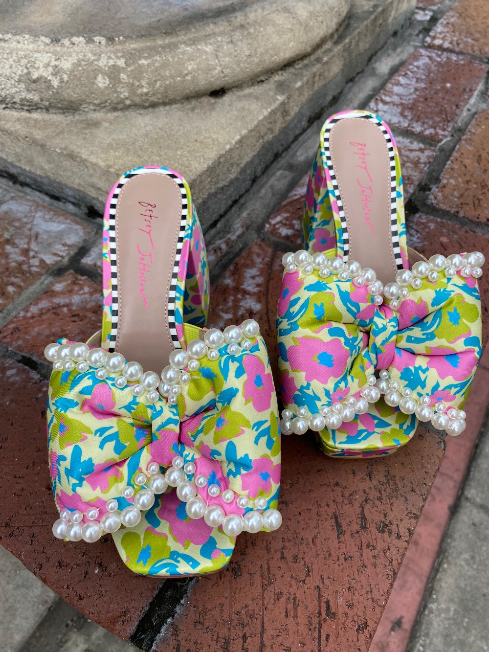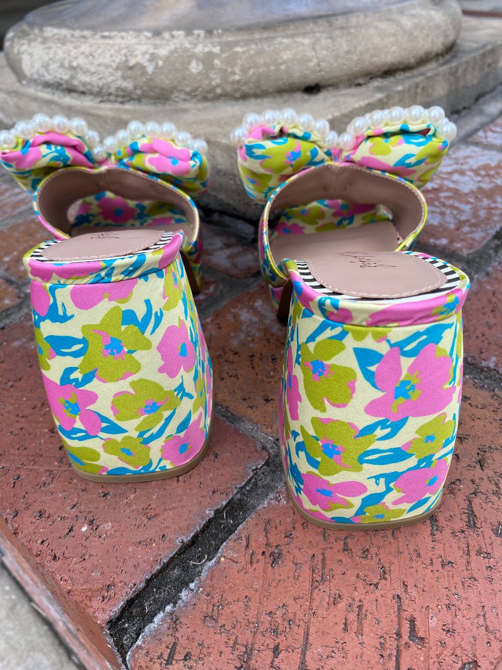 Brand New In The Boxpink green and blue heels with faux pearlsheel is approx 4 inches