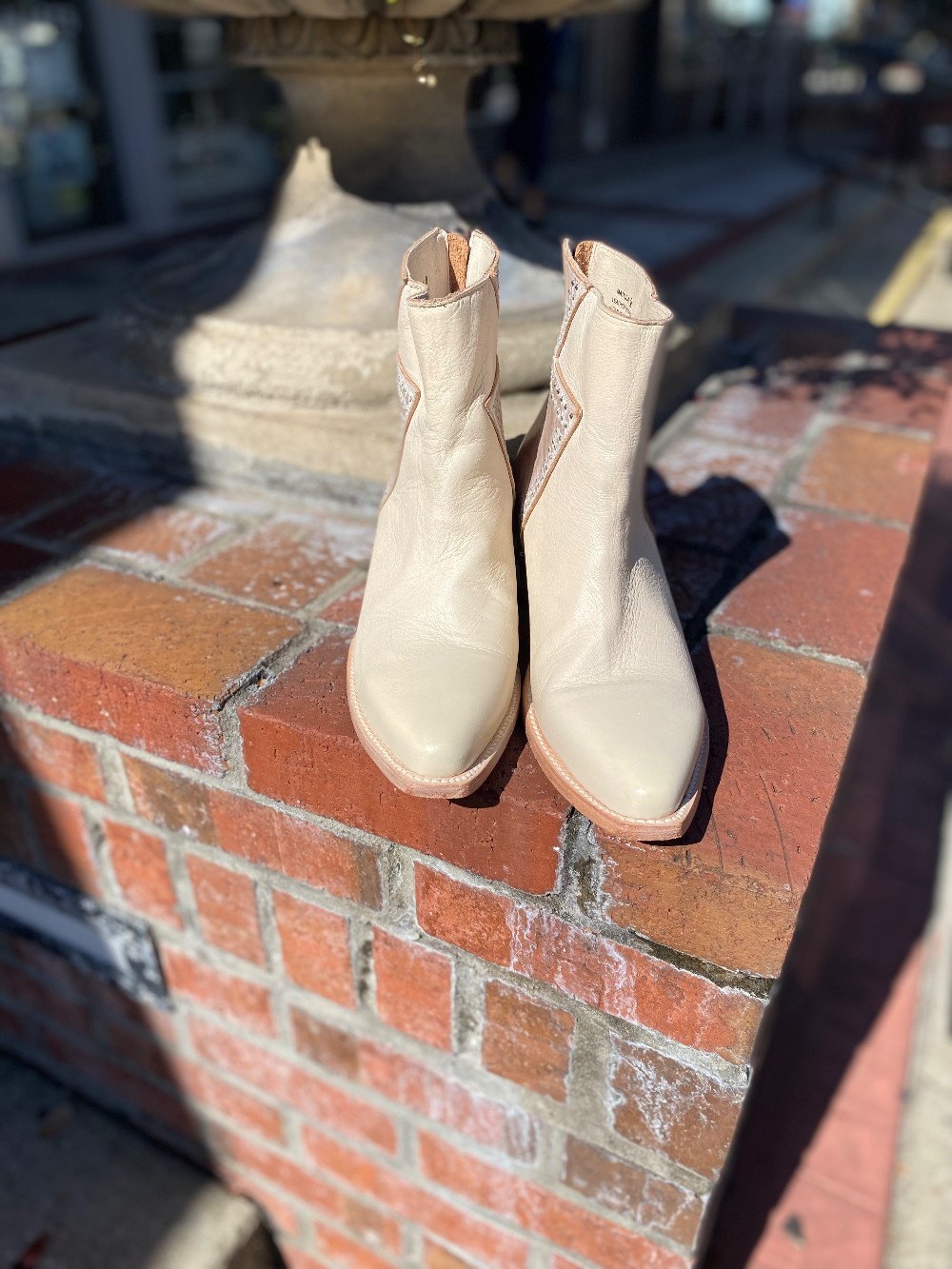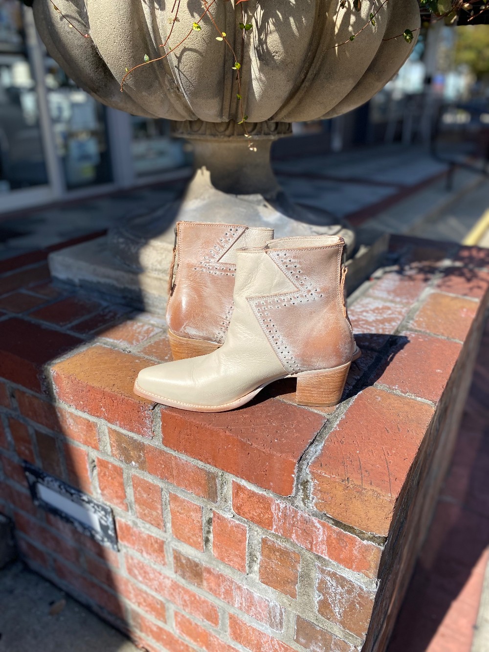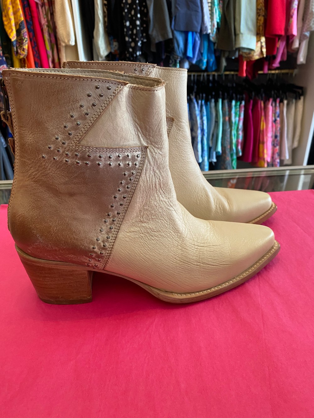 In like new conditioncream color on the front, brown leather on the back