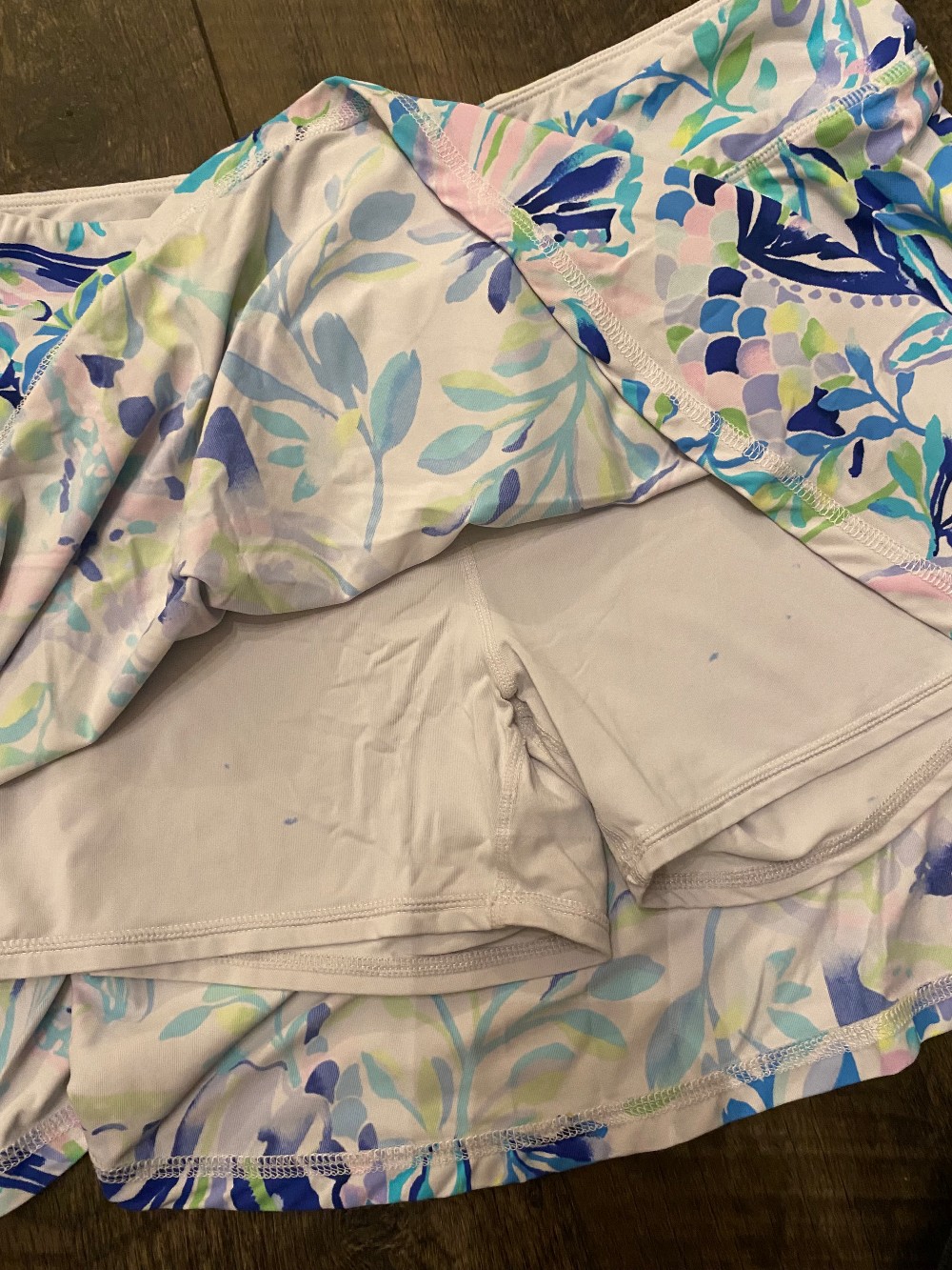 In very good pre loved conditionDoes have some marks on the shortsMade of Meryl nylon and spandex