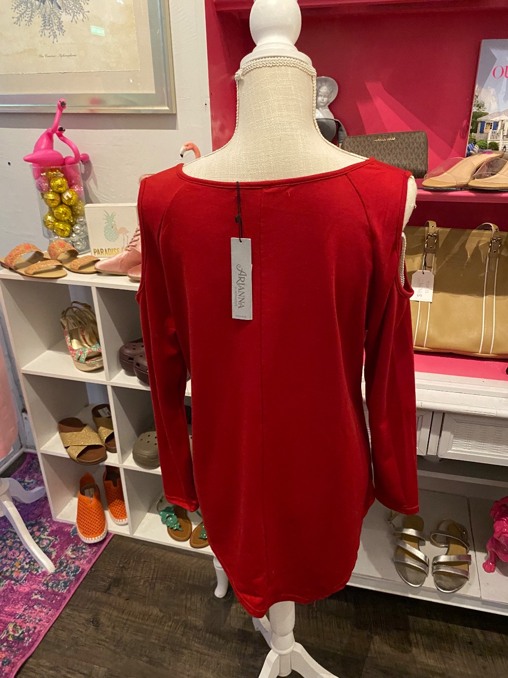 New Boutique ItemCold shoulder fire engine red topmade of polyester and spandex