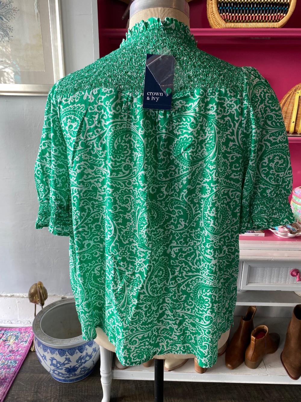 New with tagsgreen and white short sleeve button down topmade of cotton