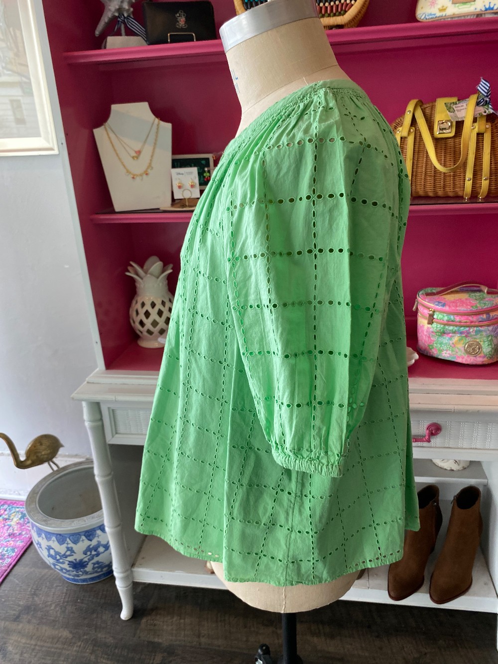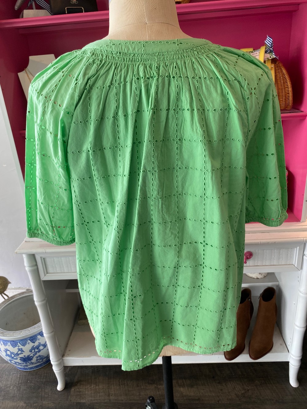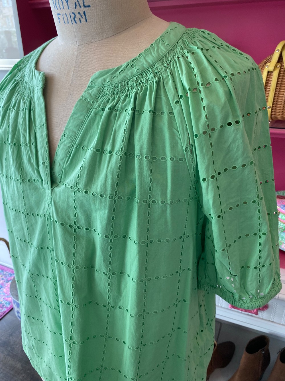 New with tagslight green eyelet topmade of cotton, short sleevesfully lined