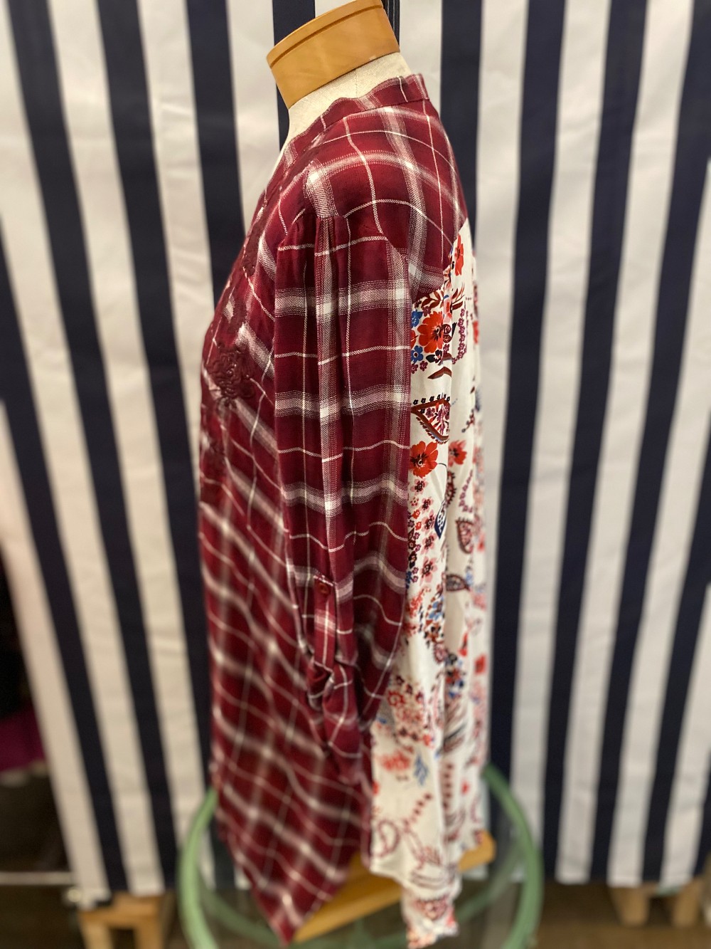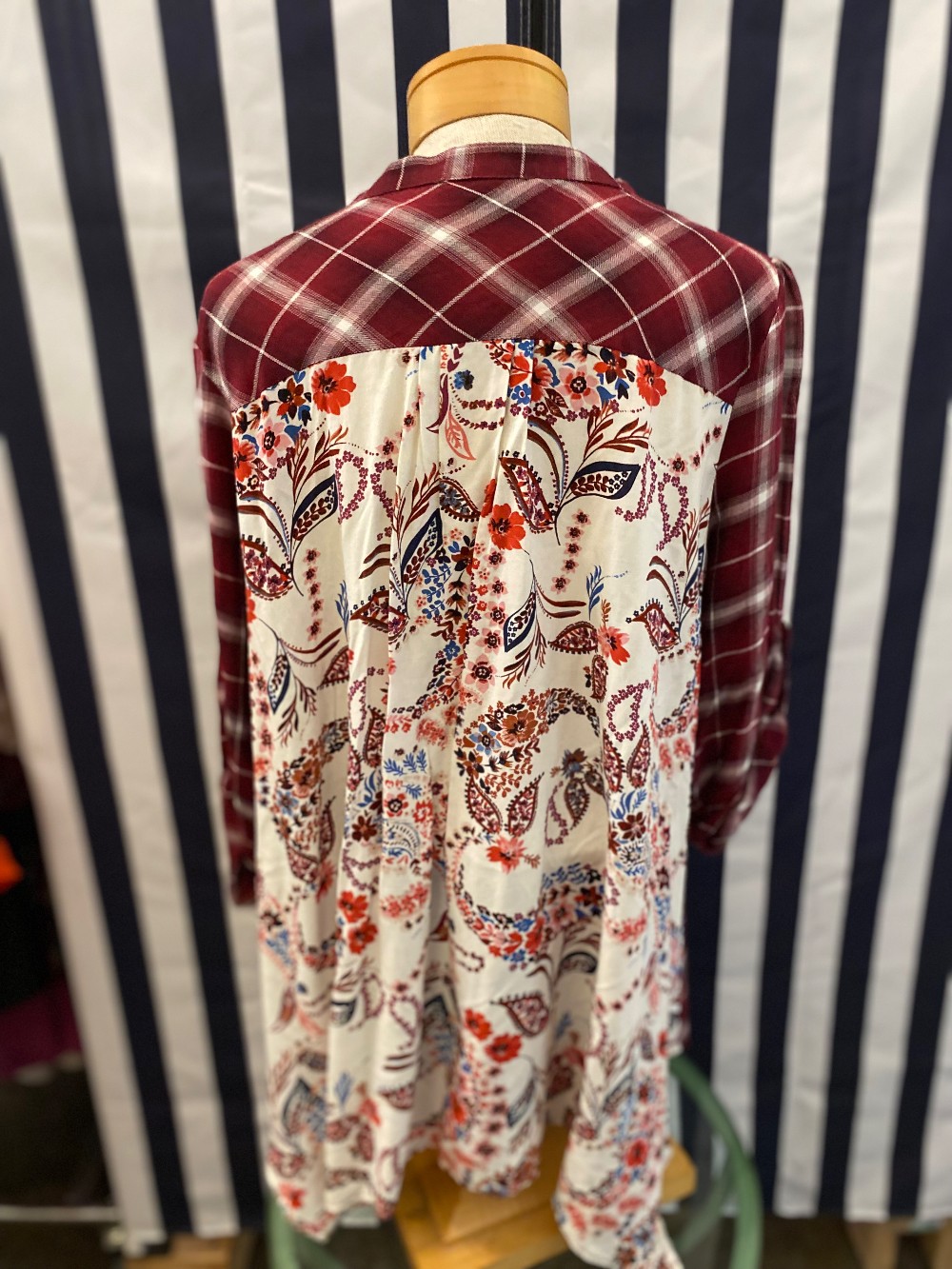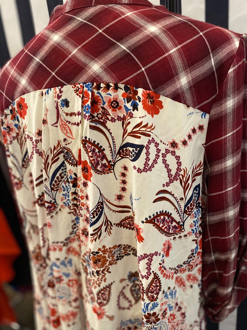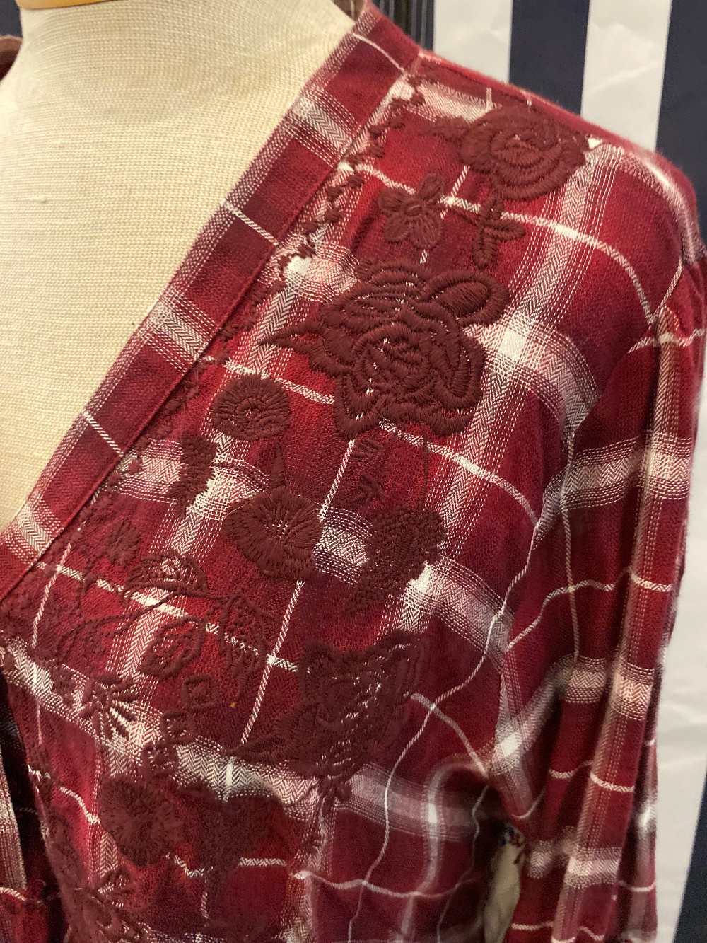 Maroon red and white long sleeve topmade of rayon