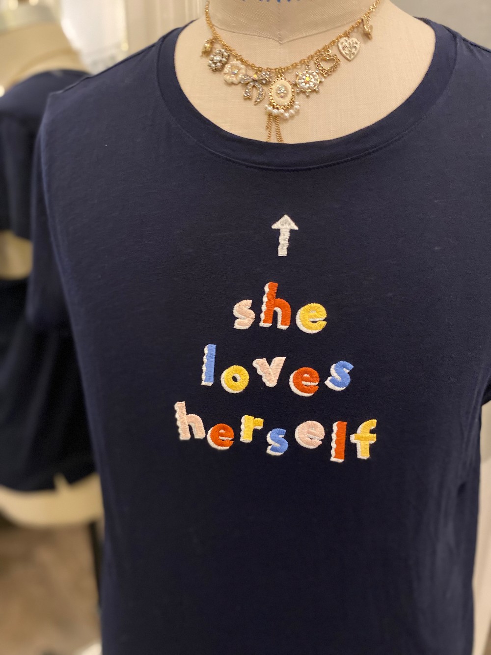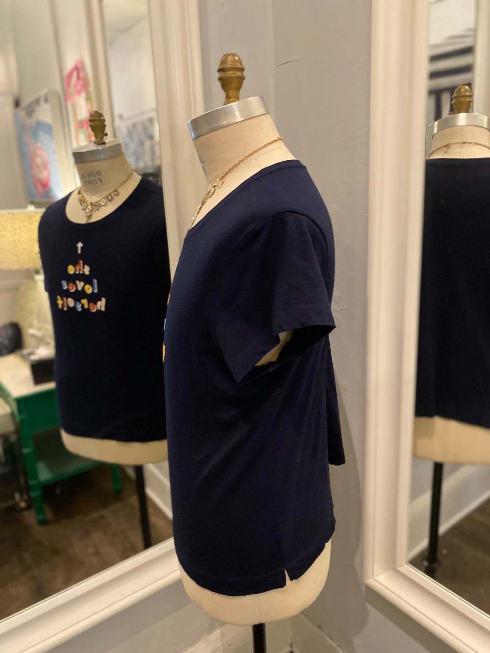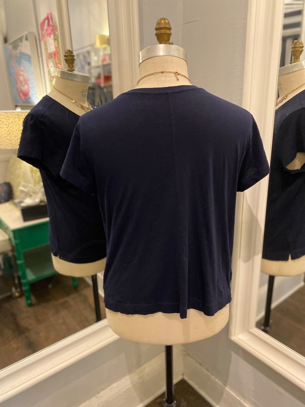 In good. preloved conditionnavy blue tee, made of cottonmeasures across the chest 20 inches flatfrom shoulder to hem 23 inches