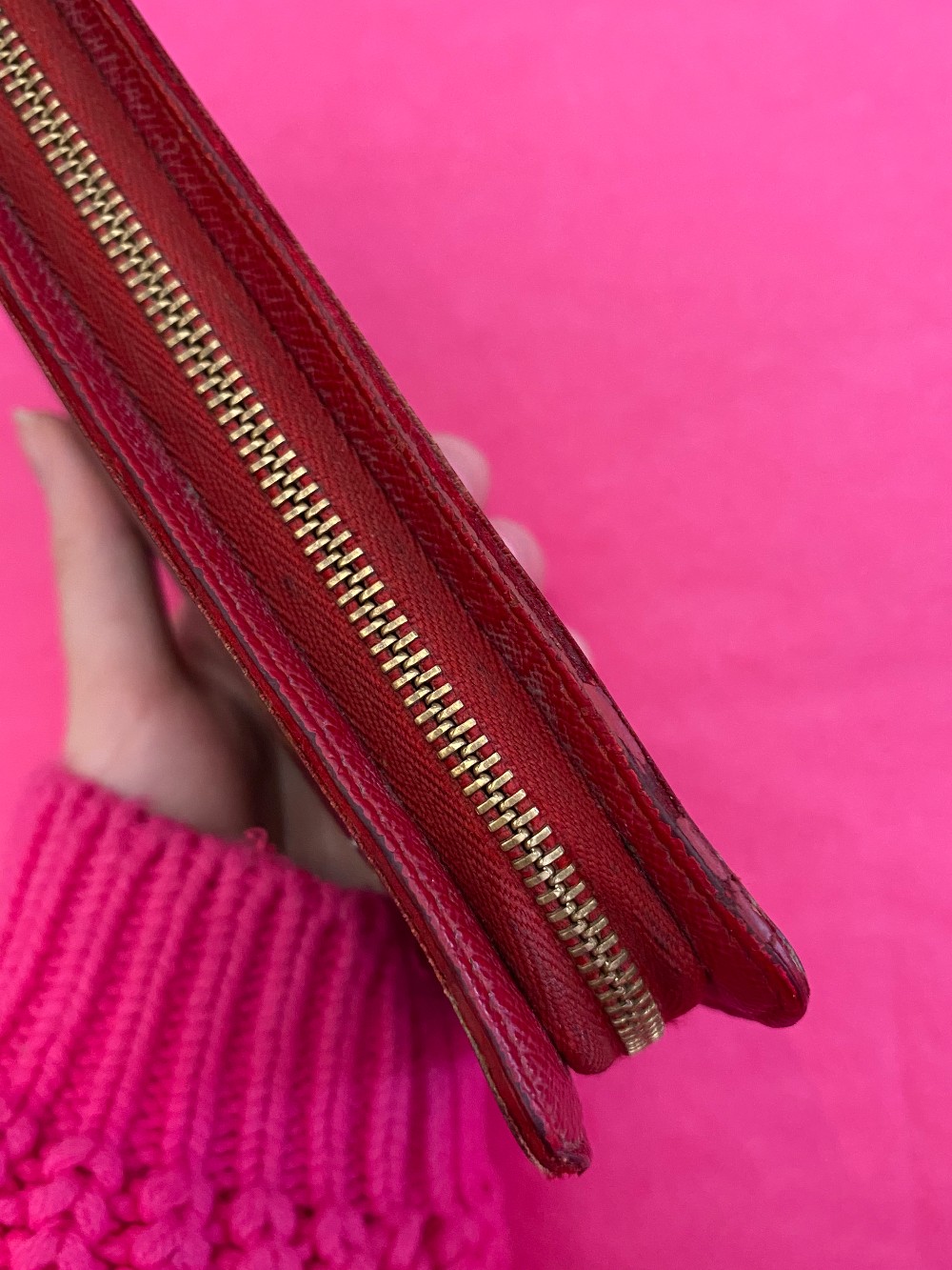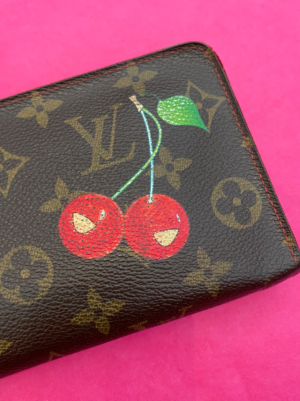 In pre loved conditionHas a lot of wear- cherry graphic is worn along with the edges and metal hardwareHas been authenticated