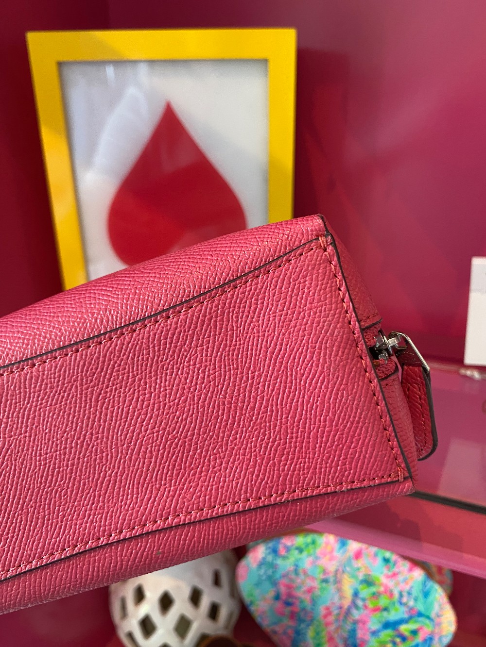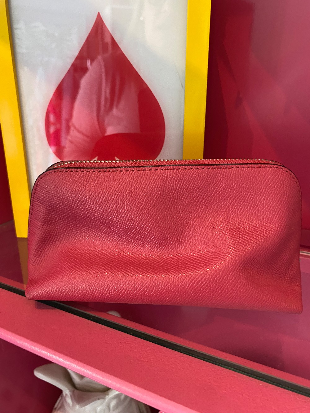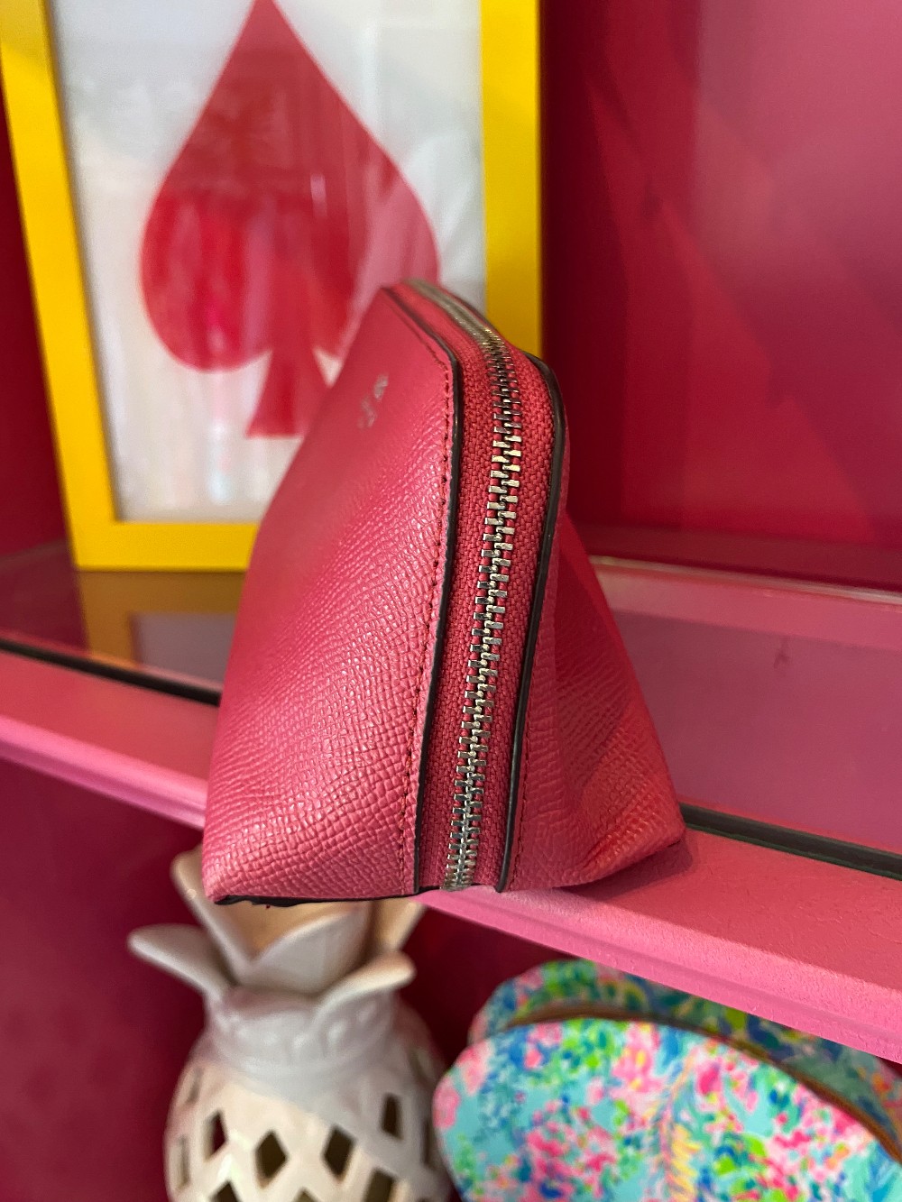 In good preloved conditionpink Coach pebbled leather makeup casemeasures 7.5 inches x 4 inches